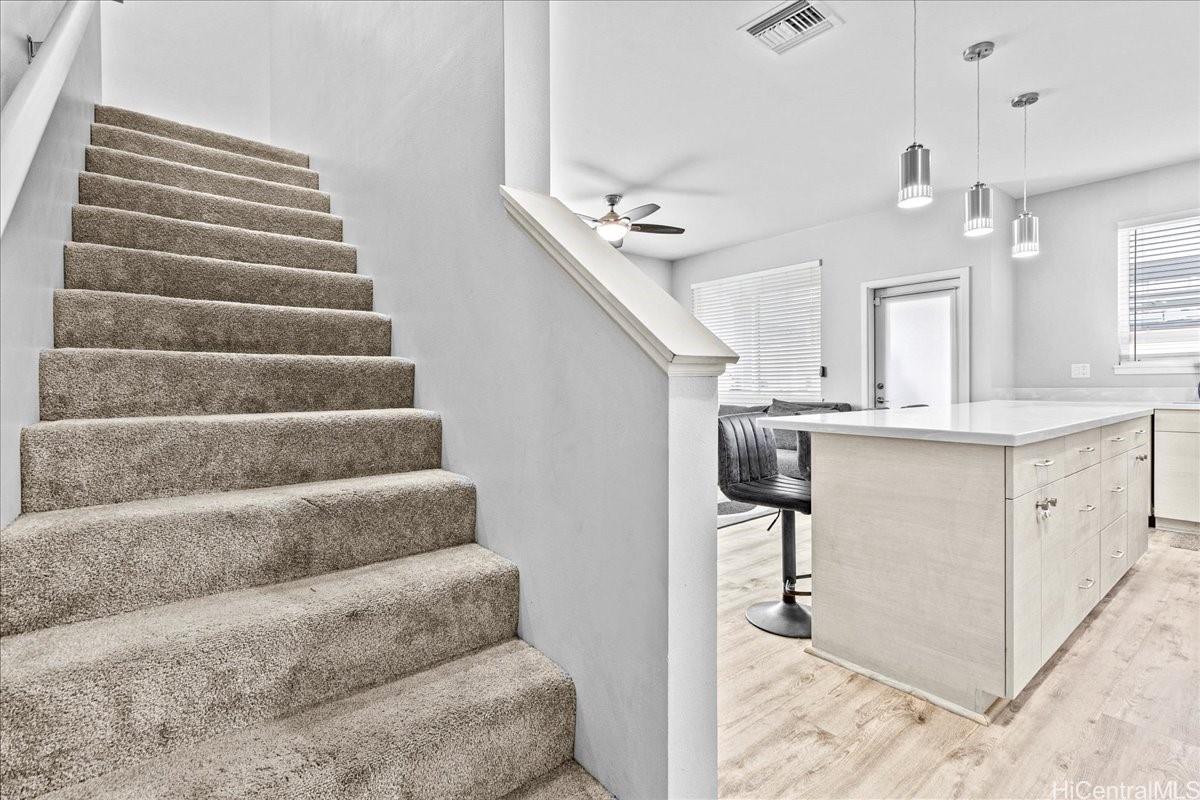 Welcome to your slice of paradise in the Seabridge community at 91-1159 Kamakana St, Unit 310. This beautifully designed two-story home offers a seamless blend of modern finishes and comfortable island living. Featuring 3 bedrooms and 2.5 bathrooms, the interior feels open and airy with 9-foot ceilings and a bright flow between the living, dining, and kitchen areas.