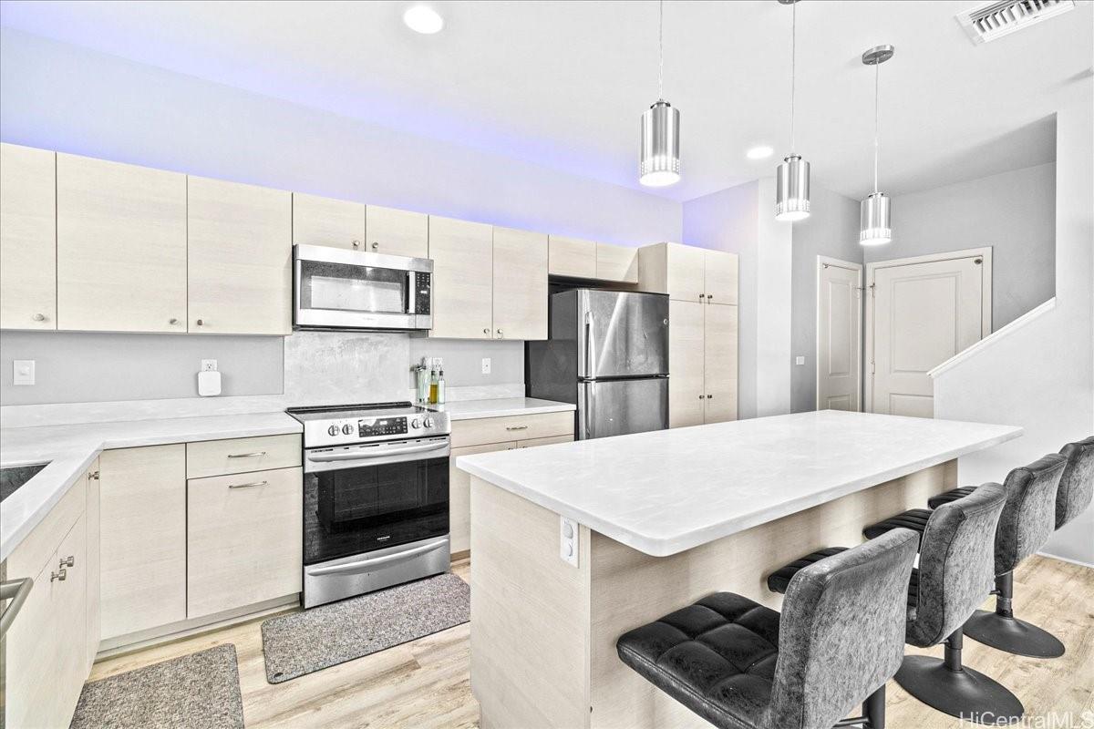 シーブリッジコミュニティの91-1159 Kamakana St、ユニット310にある、楽園のような住まいへようこそ。美しくデザインされた2階建てのこの住宅は、モダンな仕上げと快適なアイランドライフがシームレスに融合しています。3ベッドルーム、2.5バスルームを備え、9フィートの天井高とリビング、ダイニング、キッチンエリア間の明るい動線により、開放的で風通しの良い空間が広がります。屋外には、屋根付きのベランダと人工芝のフェンスで囲まれた庭があり、リラックスしたり、パーティーを開いたりするのに最適です。維持管理もほとんど必要ありません。2台分のガレージに加え、近くにゲスト用駐車場もございますので、便利です。シーブリッジは、ホワイトプレーンズビーチ、ラウラニ・ビレッジ・ショッピングセンター、カ・マカナ・アリイ、コストコ、カポレイ・コモンズに近い便利な立地で、ショッピング、レストラン、公園へのアクセスも抜群です。