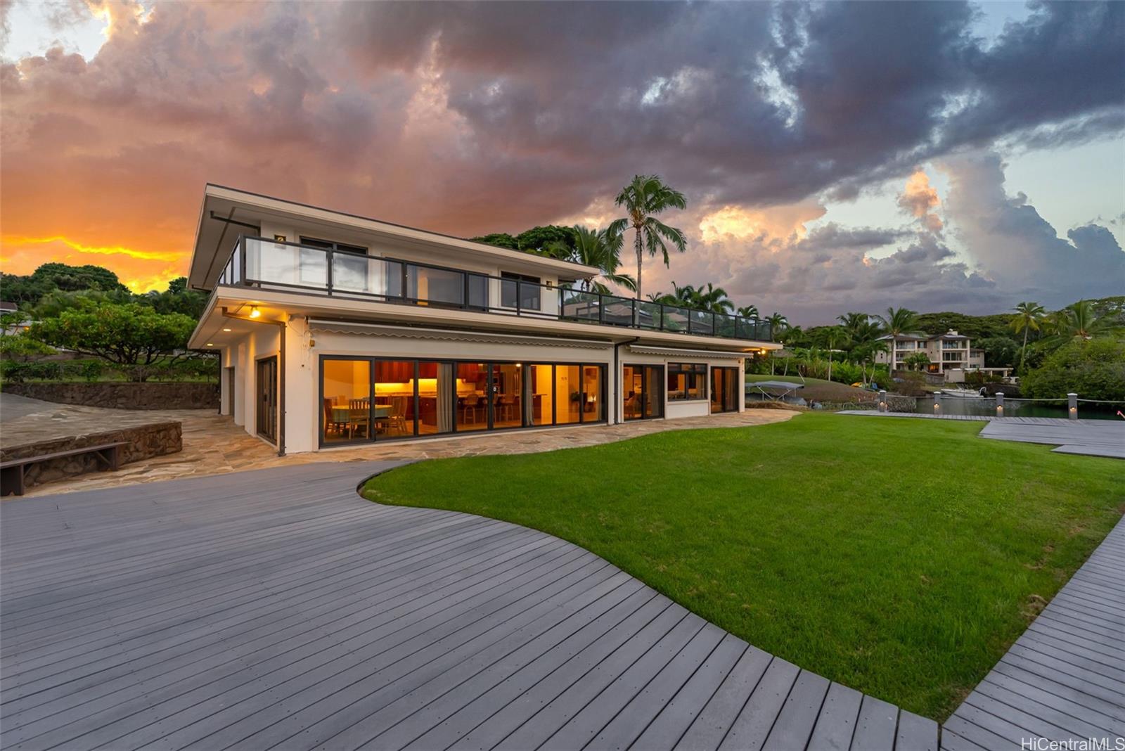 Spectacular Oceanfront property! 33,428 sq. ft. with 2 houses and a boathouse, oceanfront deck, deep water dock with cleats to secure a large boat. Upper House: 1,949 sq. ft. of living space. Newer oceanfront home, 3,337 sq. ft. 2 story with an elevator, large 2nd floor lanai, accommodating 10+ for outdoor dining, ocean/sunset views. Ground floor designed for entertaining, indoor/outdoor living, sliding glass doors open to lawn and oceanfront deck. Tiled ramp to ocean for kayaks, paddle boards, etc. which can be stored in the boathouse. A compound for a large family with development potential (subdivision/renovation potential described in architect opinion letter). Consider building 2nd floor on the Upper House for unobstructed views of the ocean and Ko'olau mountains. R10 zoning, well-maintained adjacent homes and private wide concrete driveway offer privacy/exclusivity protecting property values. Net sales proceeds will go to the Henry and Colene Wong Foundation, a 501 (c) (3) non profit, to benefit women and children and those in need of food and shelter in Hawaii. Lot 28,565 sq ft. Driveway 4,863 sq ft. Please watch the video and Matter port linked.