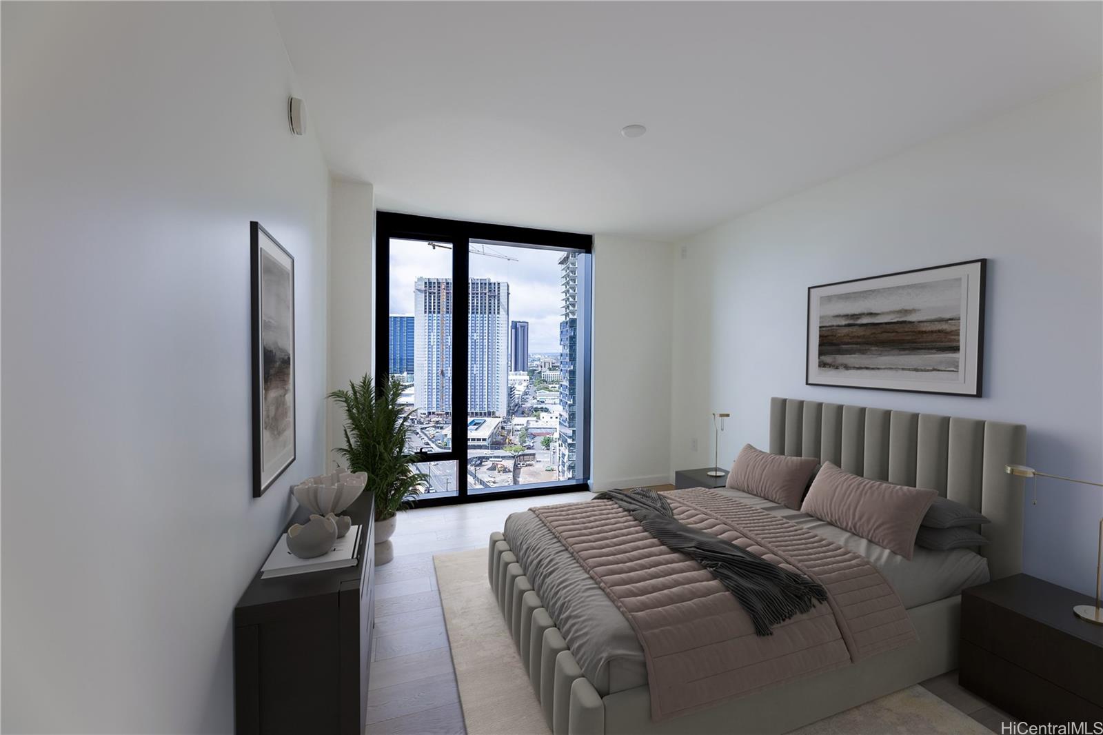 Discover elevated island living at Victoria Place, Ward Village’s newest statement in refined luxury. This impeccably designed 1-bed, 1-bath residence offers 798 sq. ft. of sophisticated comfort, highlighted by 9-foot ceilings and expansive glass walls framing stunning ocean, mountain, harbor, city, and sunset views. Upgrades include motorized living room shades and bedroom manual shades. The open layout flows effortlessly, complemented by a gourmet kitchen with Studio Becker cabinetry and premium integrated appliances. Set along Kakaako’s prestigious front row, Victoria Place delivers resort-inspired living with multiple pools, luxury spa facilities, an advanced fitness center, Pilates studio, sauna, private dining and entertainment rooms, media and theater spaces, meeting rooms, guest suites, and valet and concierge services. The exclusive Lauhala Pool House, complete with its own pool and chef’s kitchen, offers a unique venue for entertaining. A rare blend of style, comfort, and world-class design—Honolulu luxury reimagined. EV charging station is included with the unit's parking stall (P4-085). Select photos virtually staged/enhanced.