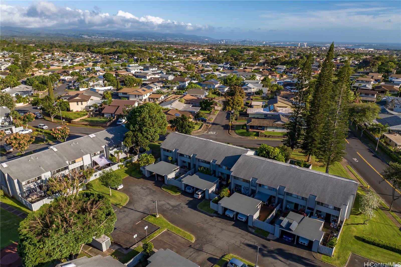 Welcome to Holaniku Hale, one of Mililani’s most desirable townhome communities! This spacious 3-bedroom, 2.5-bath corner unit residence offers the comfort of a single-family home with the convenience of townhome living. Enjoy a bright and open floor plan with a generously sized living room, dining area, and a functional kitchen perfect for everyday use. The home features two private fenced areas, one at the entryway and one in the backyard, ideal for outdoor dining, pets, or gardening. Upstairs, you’ll find three well proportioned bedrooms with ample closet space, including a primary suite offering excellent privacy, its own full bathroom, and a private lanai perfect for morning coffee or a quiet retreat. The second level also includes a generously sized closet attached to the landing, providing valuable additional storage. An additional full bath serves the remaining bedrooms, while a convenient half bath is located on the first floor. The home includes two assigned parking stalls, one in a shared carport that features a private storage closet, and this unit is situated close to guest parking for added convenience. Don’t miss your chance to make this beautiful home your own!