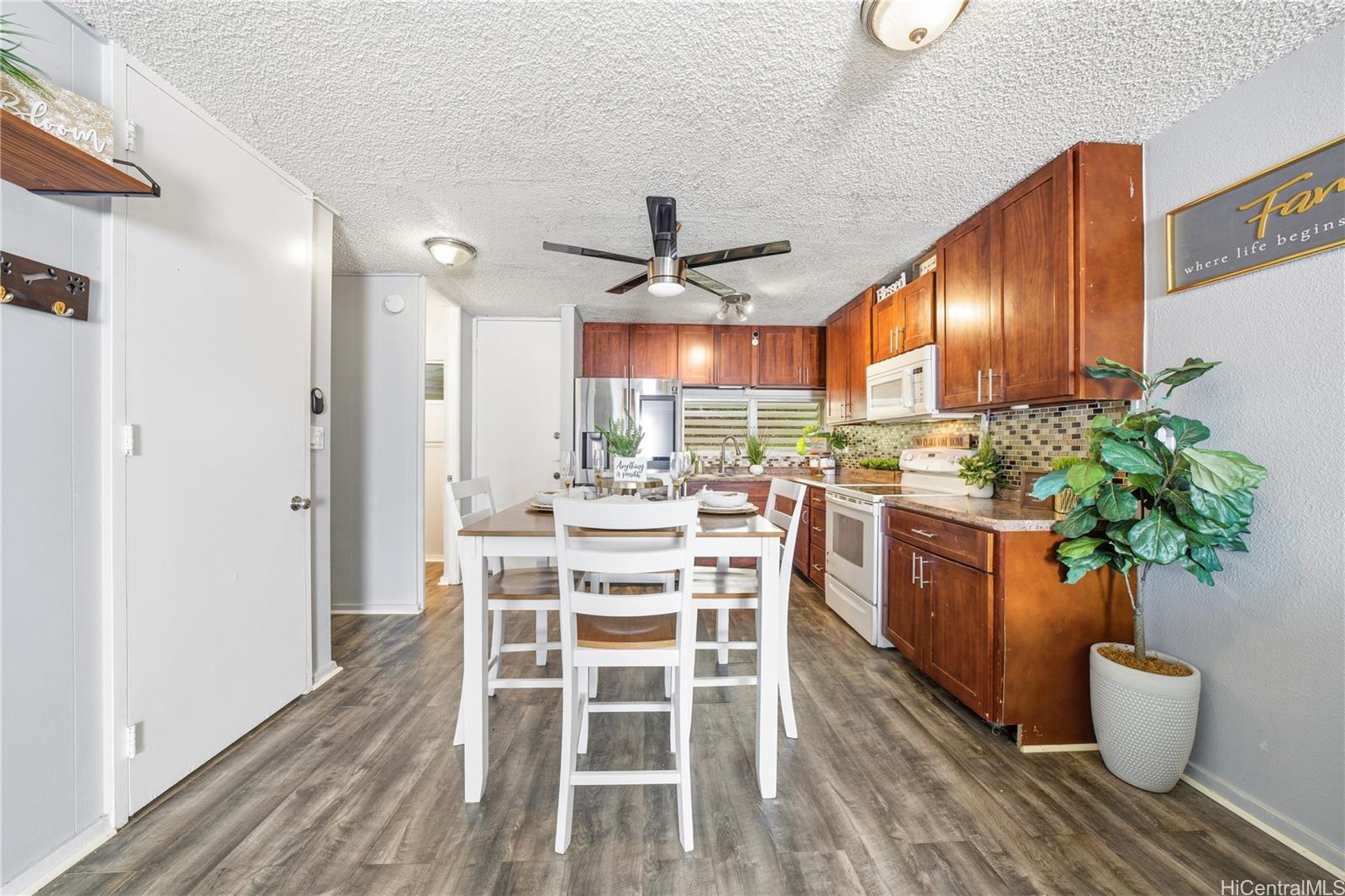 Remodeled Townhome with Ocean Views & Private Courtyard in Makakilo Gardens! Experience the perfect blend of style, comfort, and island living in this beautifully updated 3-bedroom, 1.5-bath townhome—just steps from the community pool and playground. The upgraded main level features an open living/dining area with modern flooring, fresh finishes, and seamless access to your private fenced courtyard, ideal for entertaining, BBQs, outdoor dining, or a secure play area for pets and keiki. The remodeled kitchen includes refreshed cabinetry, upgraded appliances, and efficient counter space for everyday cooking. Upstairs offers three bright bedrooms, updated lighting, and an improved full bathroom with contemporary touches. Additional perks include in-unit laundry and thoughtful renovations that enhance both function and style. Enjoy cool Makakilo breezes with ocean and coastline views, plus quick access to Kapolei’s shopping, dining, schools, and freeway routes. Pet-friendly, move-in ready, and an incredible remodeled value on O?ahu’s west side. Homes like this don’t last—schedule your private tour today!