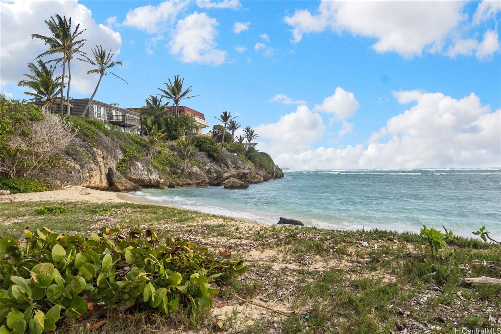 Fall in love with this slice of paradise in beautiful La‘ie. Secluded, private, 4 bed 2.5 bath duplex offers old Hawaii Charm, with deeded access to a long white sandy beach. Spacious, main home 3 bed 1.5 bath, with high ceilings, ocean view, & hardwood floors. Double wall construction and attic space for storage. Partially renovated in 2021, upgraded kitchen with marble, travertine bathroom & custom tub. New post/pillar & foundation beams completed in 2021. Opportunity to raise home and build another level. Windows & Solar Hot Water under warranty. Could be converted back to single family, or keep tenant with rental income of $2000 a month. Unit is a full 1 bed 1 bath. Very centrally located on the North Shore, across the st from all shops, yet privately tucked away. Workshop/boardroom, laundry area & tropical garden. Great for people with an active lifestyle. Close proximity to shopping center, restaurants, hardware store, gas station, beach, schools, and the University of BYU. Fifteen minutes to 'Ehukai Beach Park "Pipeline", 45 minutes to Kane'ohe. Turtle Bay resort is 10 minutes away.