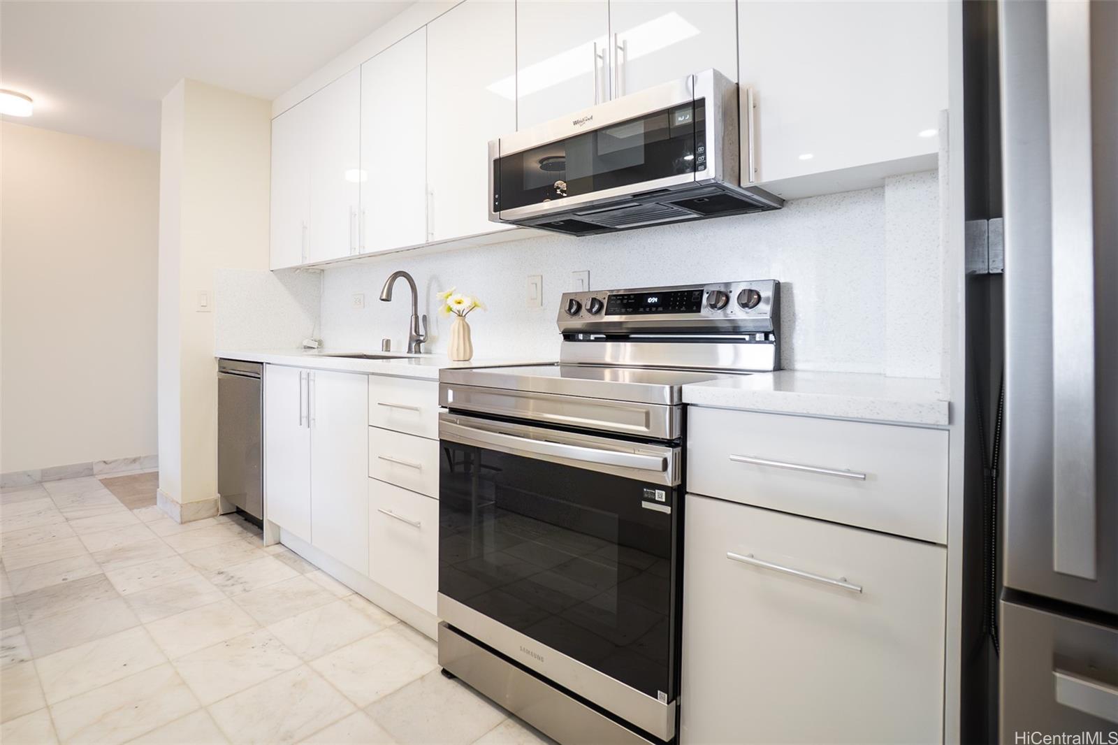 最高のロケーション!ドン・キホーテ、アラモアナセンター、ウォルマート、サムズクラブ、パラママーケット、ターゲット、ロスなど、数多くのショップやレストランが近くにあります。広々とした1,086平方フィート(約113平方メートル)の室内と、149平方フィート(約14.3平方メートル)のベランダからは、ちらりと見えるオーシャンビューをお楽しみいただけます。オープンキッチンには、高級感あふれる大理石の床と洗濯機/乾燥機を完備。セキュリティもしっかりしており、管理の行き届いた建物にはゲスト用駐車場も完備。アメニティには、プール、広々としたレクリエーションエリア、エクササイズルーム、サウナ、バーベキュー設備、卓球台、ビリヤード台、ワークショップ、洗車場などがあります。管理費には、ケーブルテレビ、インターネット、温水、下水道、水道が含まれています。