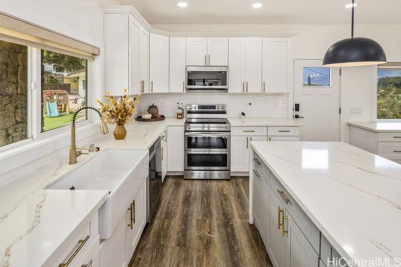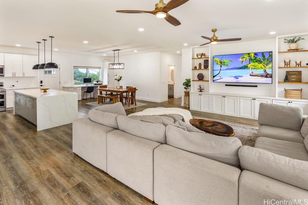 Elevated at the foot of the breathtaking Ko'olau Mountains, this Hau'ula property offers a serene island lifestyle with modern comforts. The home features three well-appointed bedrooms and 2 bathrooms, designed around an open floor plan that enhances both flow and functionality. Expansive windows and sliding doors invite natural light into the living spaces, creating a bright, uplifting atmosphere perfect for everyday living or quiet moments at home. Stretching out behind the home is a sweeping open backyard, framed by gentle greenery and mountain views. This spacious area is perfect for gatherings, weekend barbecues, or simply enjoying the island breeze, creating your own outdoor oasis.