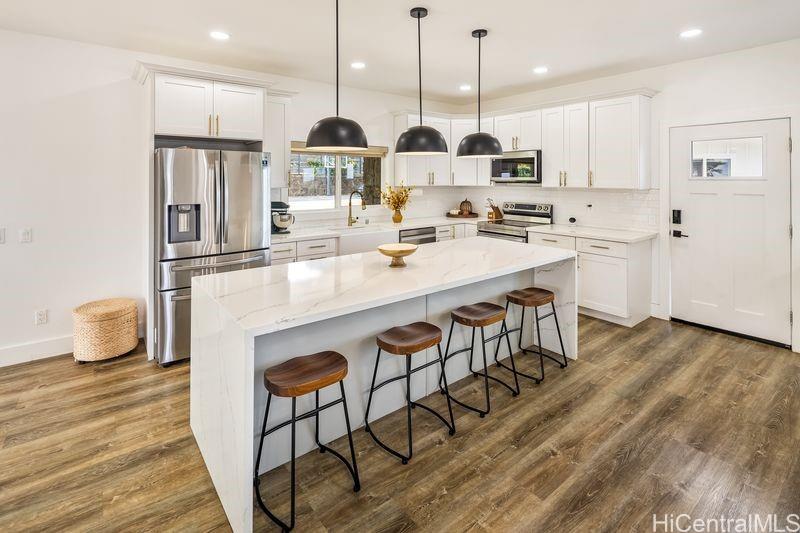 注記:MLS番号202525871は隣に位置しており、別売りです。息を呑むようなコオラウ山脈の麓に建つハウウラのこの物件は、モダンな快適さを備えた穏やかな島のライフスタイルを提供します。住宅には設備の整った3つのベッドルームと2つのバスルームがあり、動線と機能性の両方を高めるオープンフロアプランに基づいて設計されています。大きな窓とスライドドアから自然光がリビングスペースに取り込まれ、日常生活や自宅での静かなひとときに最適な明るく活気のある雰囲気が生まれます。住宅の後ろには、穏やかな緑と山の景色に囲まれた広々とした裏庭が広がっています。この広々としたエリアは、集まりや週末のバーベキュー、または単に島のそよ風を楽しみながら自分だけの屋外のオアシスを作るのに最適です。すっきりとしたライン、高品質の仕上げ、そして思いやりのある職人技が組み合わさって、新鮮でありながら時代を超越した空間が生まれています。現代的な設備、最新の家電製品、効率的な冷却システムは、新築ならではの快適さと利便性を反映しています。キッチンには、スタイリッシュさと耐久性を兼ね備えた洗練されたクォーツカウンターが備わっており、調理やおもてなし、食事のための十分な作業スペースを提供します。