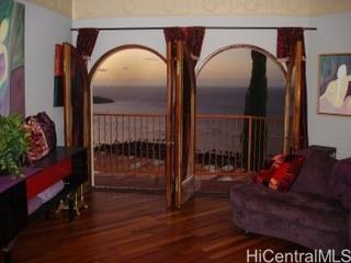 Panoramic view of Pacific Ocean from Koko head to Diamond Head. Mediterranean style house built by Bill Benjamin. 2 balconies to sit out and enjoy Ocean Views. 5 bedrooms and 5 baths. Main bedroom photo shown with ocean from balcony. Located on a Corner Lot at Hawaii Loa Ridge, 930 feet above the sea level. Landscaping includes 83 tall trees such as Hollywood Juniper and Italian Cypress trees. 16' tall living room, 12' tall rooms on ground floor including kitchen, dining room, and two bedrooms. Solid, not veneer, koa wood floors throughout. Recently repainted interior and exterior. Spilt AC. Estimated 4,400 sq ft living space. Large Courtyard with water Feature. Genuine underground wine cellar,159 sq ft, can hold 1300 bottles and storage space. Two large walk in closets. Over 600 sq ft of extra storage space. Main Kitchen contains Sub Zero fridge and Viking gas stove. Jacuzzi. Main bedroom has a wet Bar. New water Heater. Wall relief sculptures imported from Italy together with Impressionist painting.