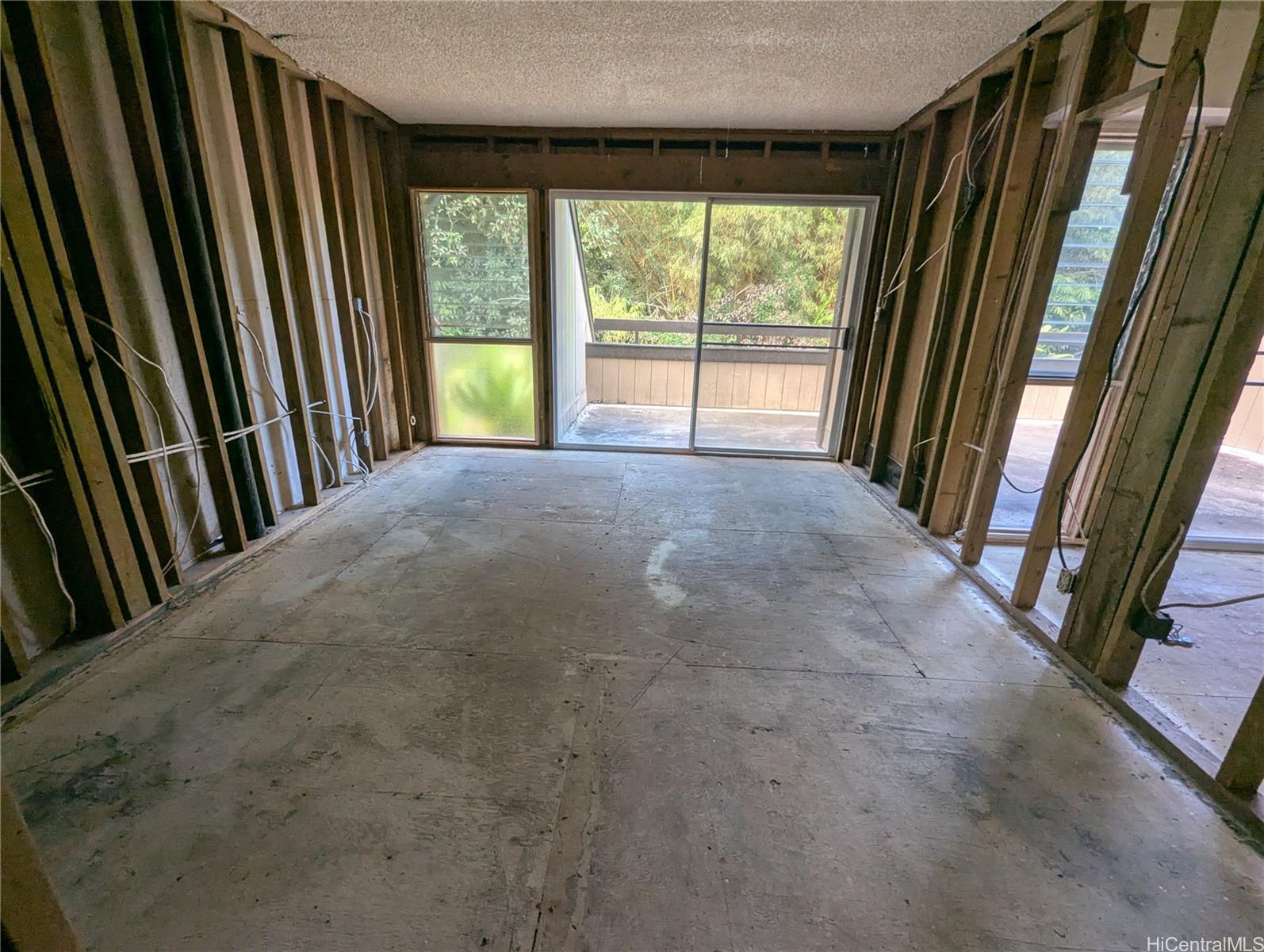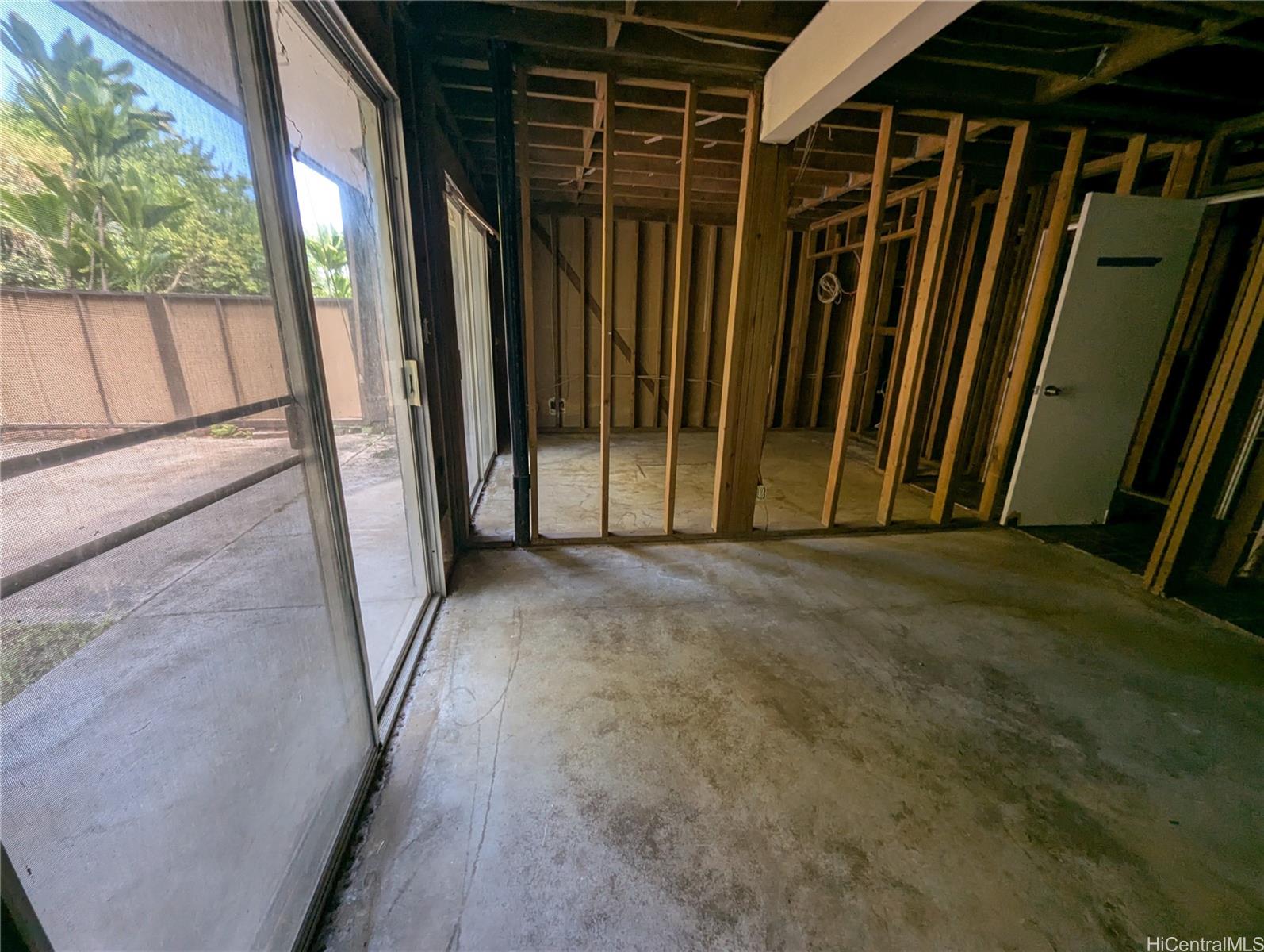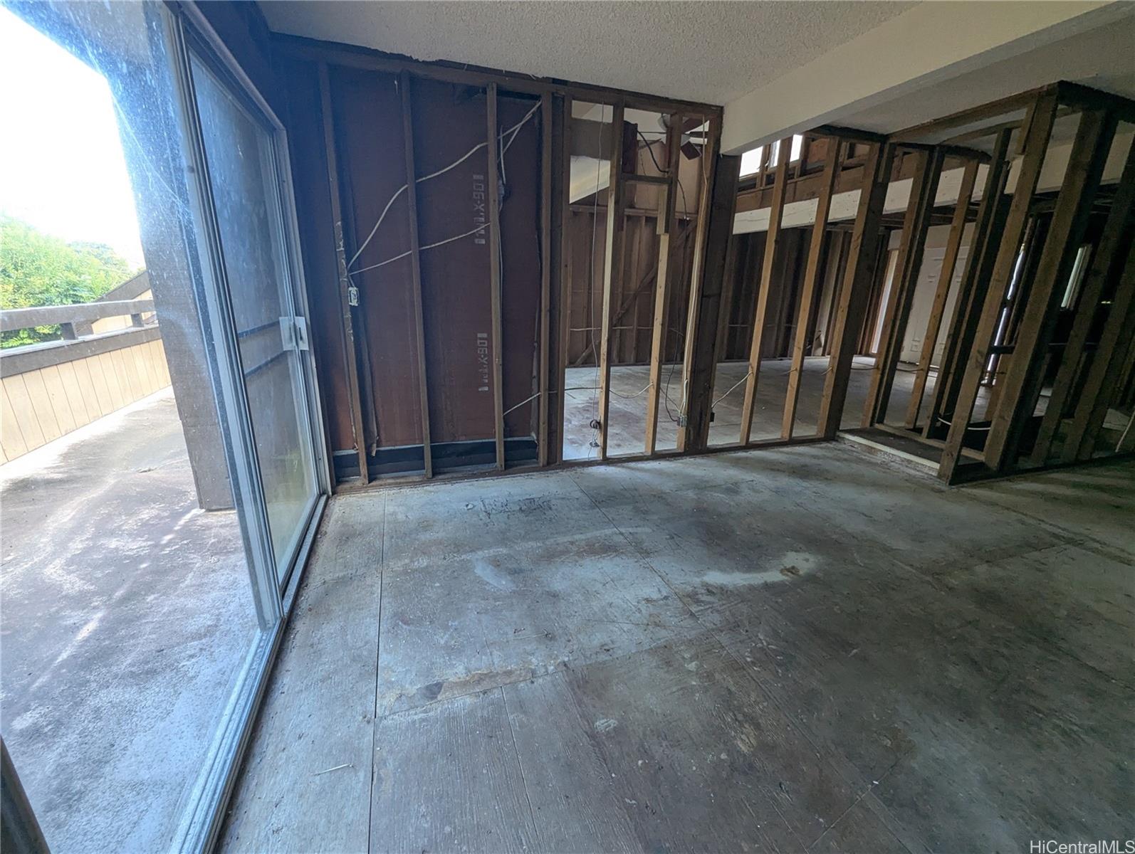 Here's your opportunity to design your dream home! Bring your contractor and make those designer dreams a reality. This split level, 3 bed, 2 bath, town home unit in Club View Gardens II, has been stripped down to the studs and is waiting for your vision to bring it back to life. Relax on either the large lanai that stretches the width of the top floor or in the fully fenced back patio on the lower level, with the mountain and lush foliage behind the building. Get away from it all and enjoy the peace and tranquility that being at the edge of the complex brings. Opportunities like this don't come around often, so call your agent and schedule your showing today!