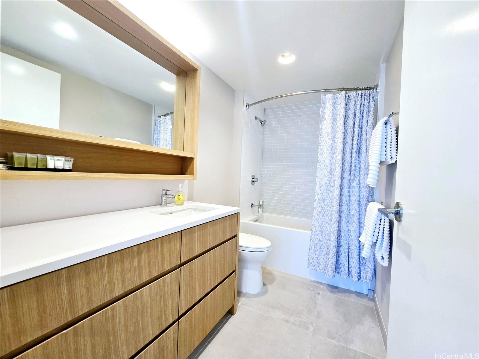 Experience stylish, modern living just moments from Ala Moana Beach and Ala Moana Shopping Center. This almost-new, fully furnished condo offers a comfortable blend of convenience and resort-inspired amenities. The upgraded residence features contemporary furnishings, Bosch appliances, and a relaxing soaking tub. Community amenities include a pool, jacuzzi, BBQ area, and a well-equipped gym. The assigned parking stall with EV-charging capability adds everyday convenience. Enjoy an exceptional lifestyle in a highly sought-after Honolulu location.