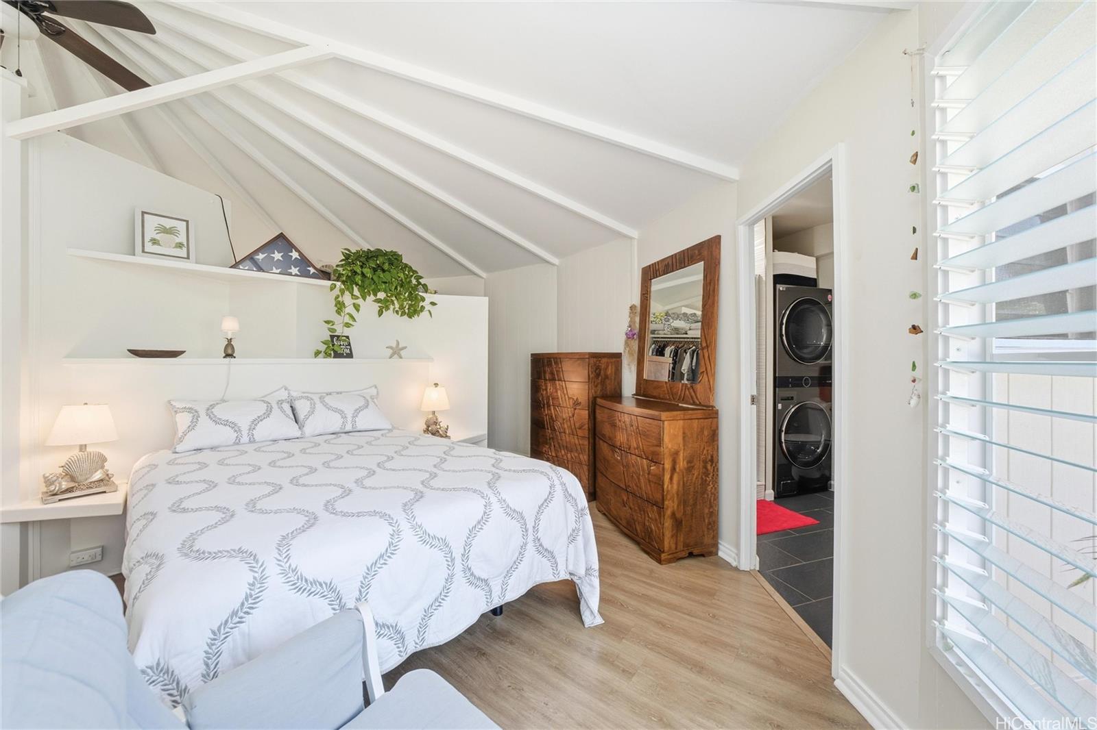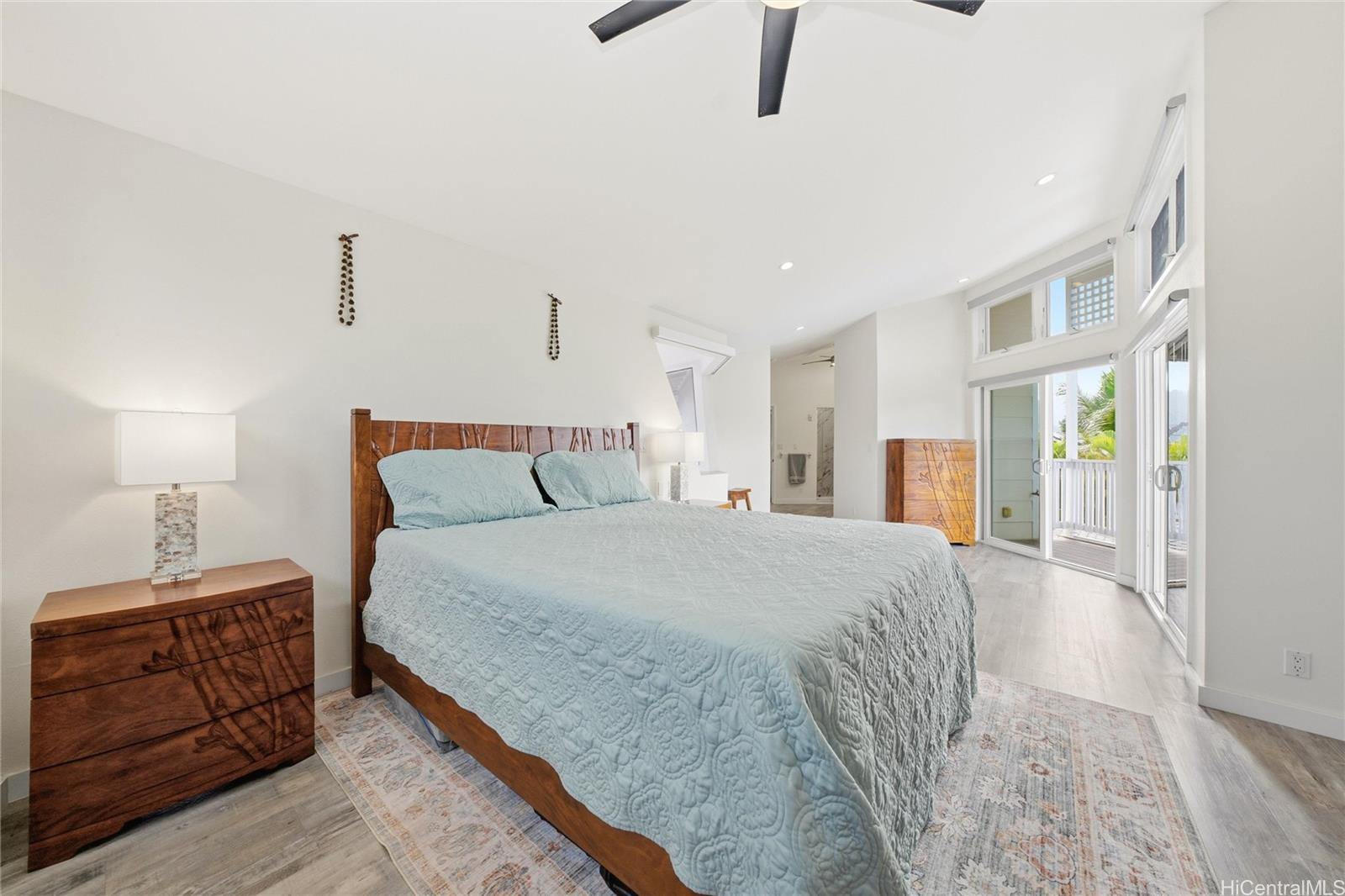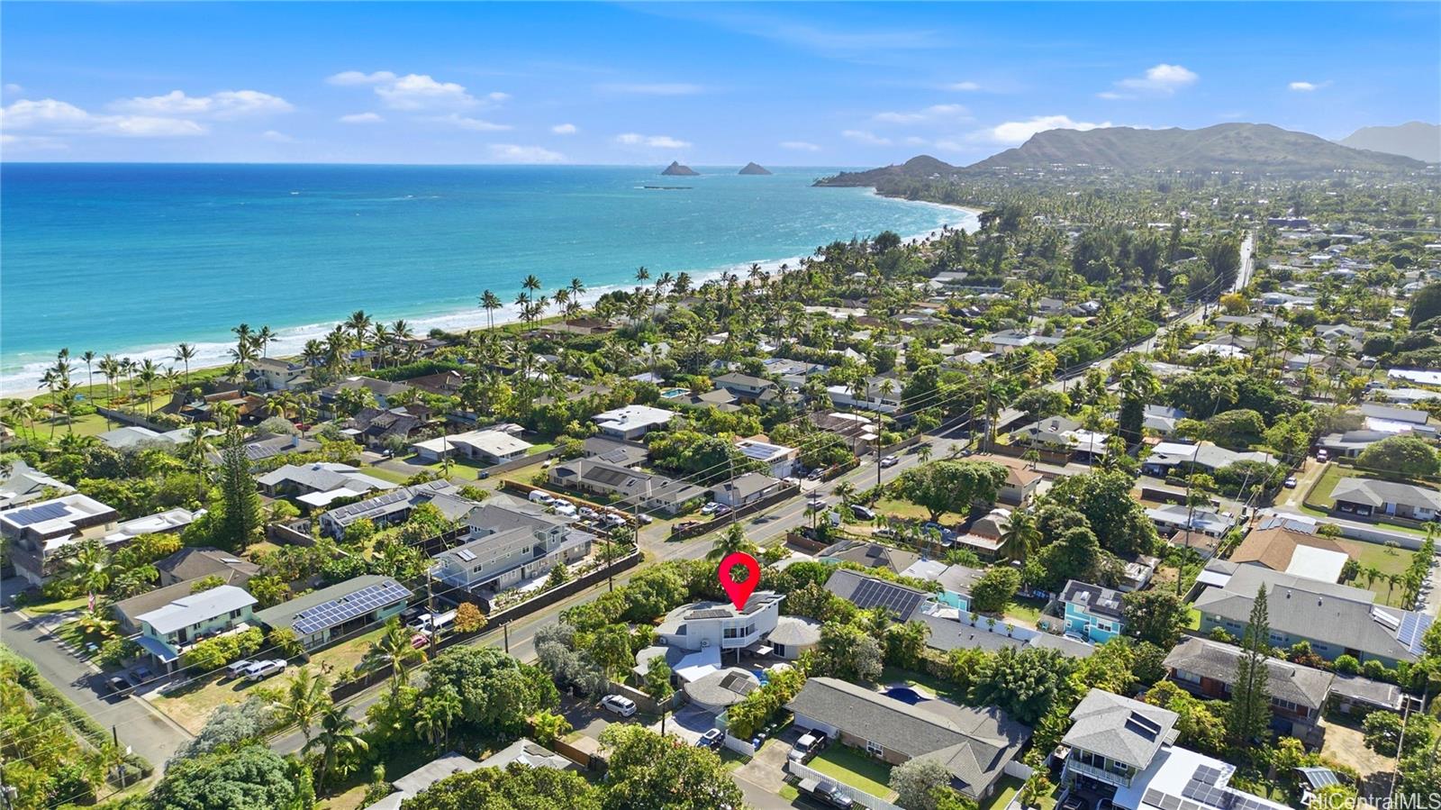 Island Living at its best — Just One Block from Kailua Beach on the corner of Palapu Street. Step into this one-of-a-kind 4-bedroom, 3.5-bath contemporary island home featuring vaulted ceilings and 2,936 sq.ft. of bright, open living space, all enclosed on a 10,000 sq.ft. lot. Relax or entertain around your solar-heated pool with both covered and open lanais—perfect for seamless indoor/outdoor living. This property includes a 3-bedroom, 2.5 bath main home, with most living areas on the main level. The private upstairs primary suite offers a peaceful, ensuite retreat away from the main living spaces. In addition, there is an attached 1-bedroom, 1 bath with a kitchen that can be used as a rental or mother-in-law suite. Move-in ready with 30 owned PV panels (NET metering), split ACs in every room, luxury vinyl plank flooring, an upgraded kitchen, motorized blinds, updated lighting, and more. Additional highlights include two laundry areas, an attached workshop/storage room, a garage, and extra parking. Located in highly sought-after Kailua, close to dining, shopping, and endless watersports—this home delivers comfort, flexibility, and modern island style. Your Kailua oasis awaits!