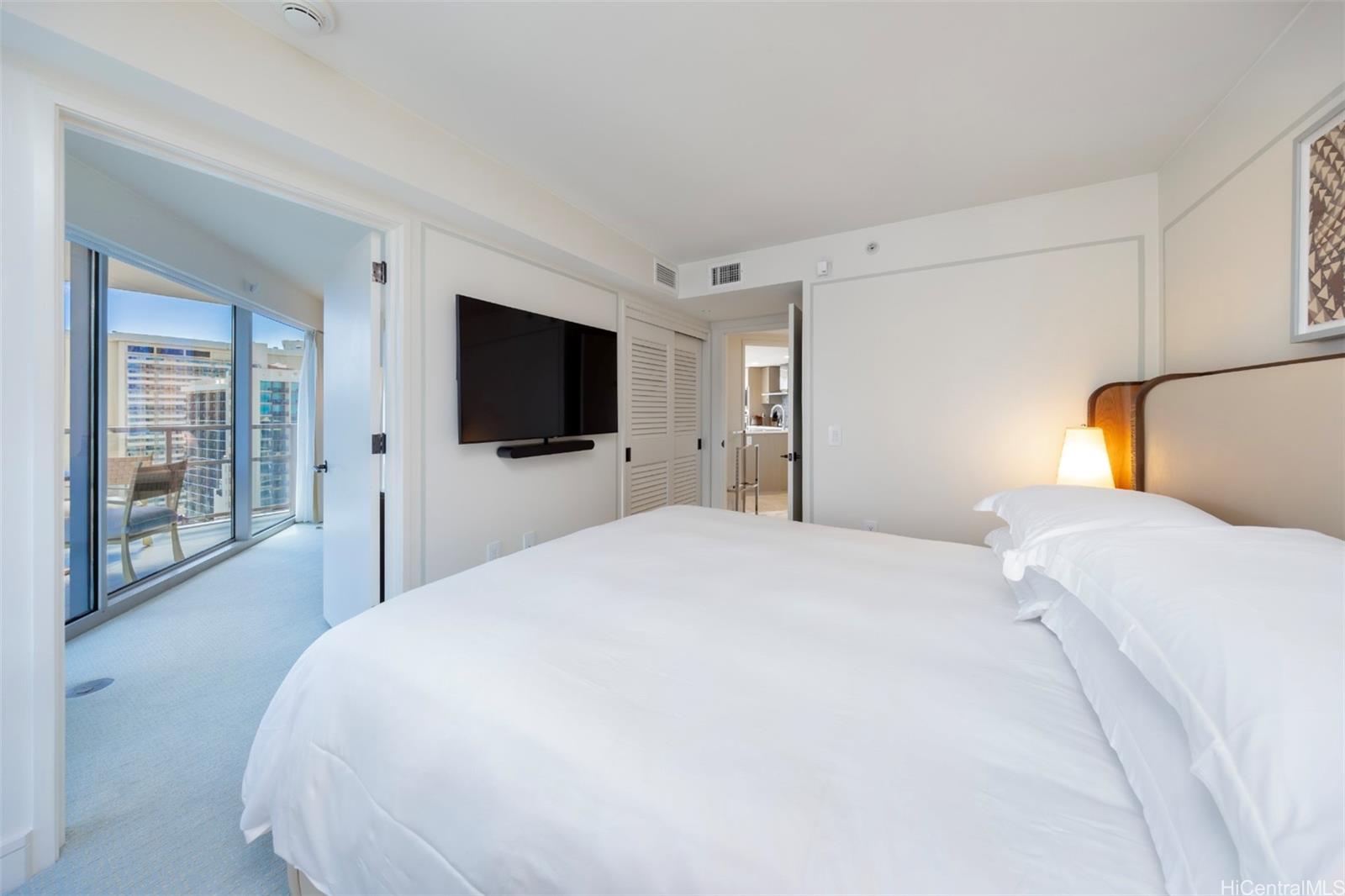 Ka La'i Waikiki Beach, formerly Trump International Hotel Waikiki, stands as an icon of luxury living in Honolulu. Situated along the southern coastline of Oahu near the entrance of Waikiki, this superb location puts you just across the street from world-famous Waikiki Beach, where turquoise ocean waters, stretching sandy beaches, and water activities await. This 22nd floor 1-bedroom corner residence enjoys dynamic views of paradise, stretching from the majestic Ko'olau Mountains to the Pacific Ocean. A large corner lanai adds the perfect place to enjoy indoor/outdoor living while taking in the sunrise. This residence is just completed a full update and renovation including new furniture, cabinetry, counter-tops, and more in October, 2025. The current owner has paid $201,000 for the renovation. Enjoy a true resort lifestyle featuring signature concierge services, luxurious amenities, a stunning infinity-edge pool, fitness center, spa, and on-site restaurants, available at your leisure. Ka Lai is a hotel condominium and Residence #2202 is in the hotel rental program. Listing includes enhanced, zoomed-in photos.
