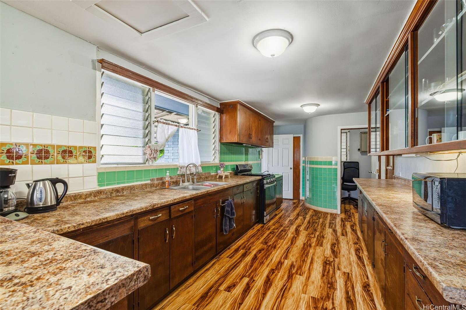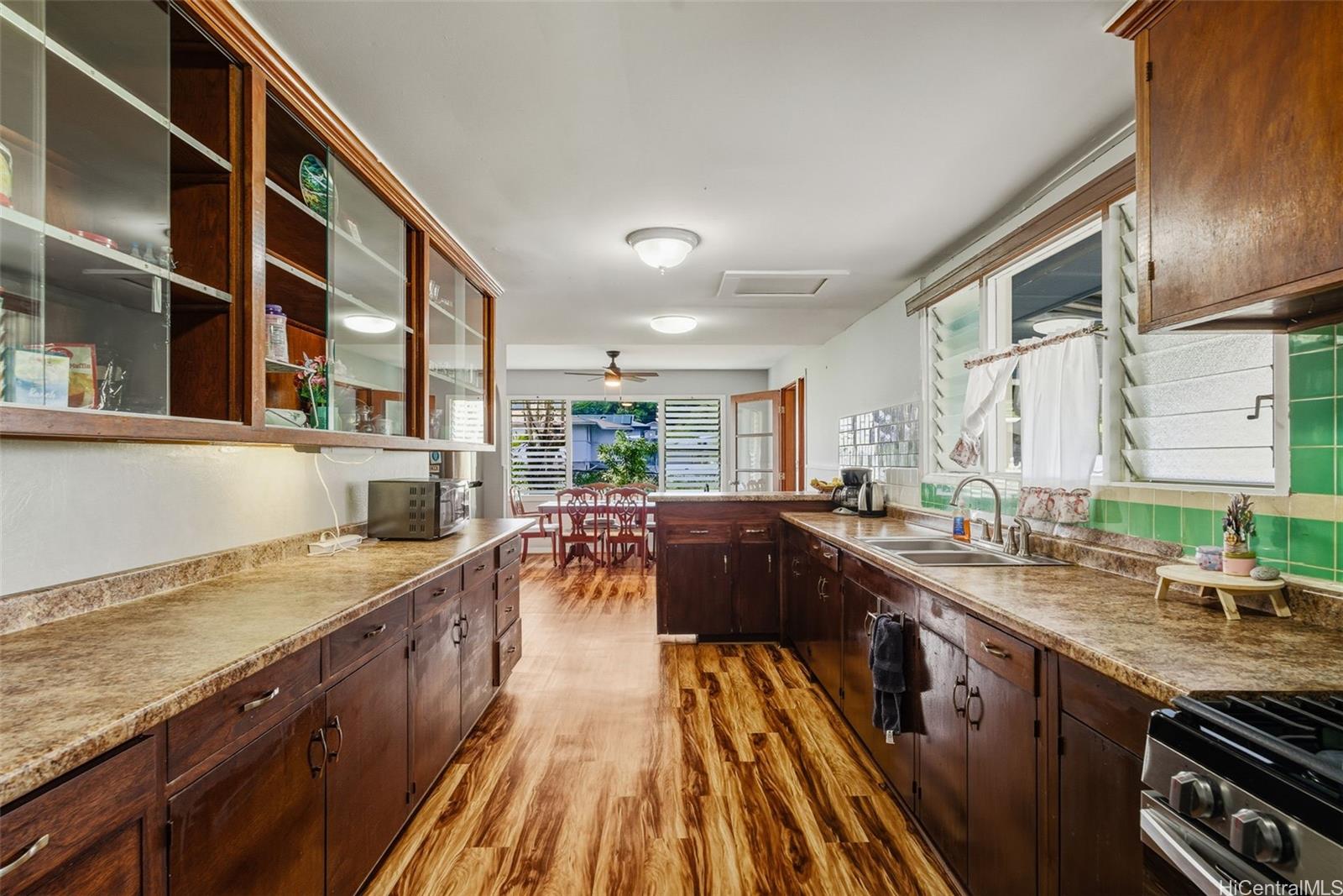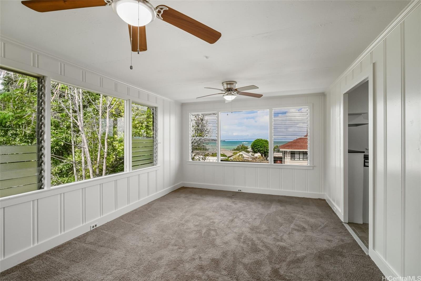 Spacious two-story home with ocean views looking towards Coconut Island with Kualoa in the distance. Mountain views of the majestic Koolau mountain range. Large living room, separate full dining room with ample sized kitchen and loads of cabinet space. Den and separate study on the main level as well as a small office. On the second floor are four large bedrooms plus a family room with expansive ocean and mountain views. A breakfast nook upstairs features a full-sized refrigerator and sink, perfect for making snacks for game or movie night. The oversized carport easily fits four vehicles. Excellent location between Kailua and Kaneohe, easy access to H-3 and steps away from the YWCA. There are a lot of options for this large home.