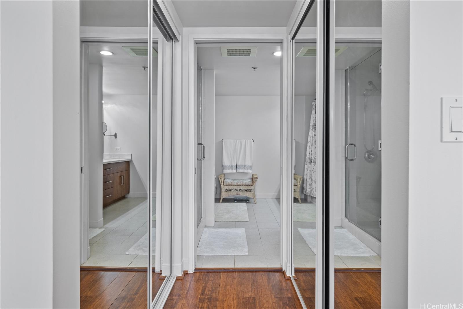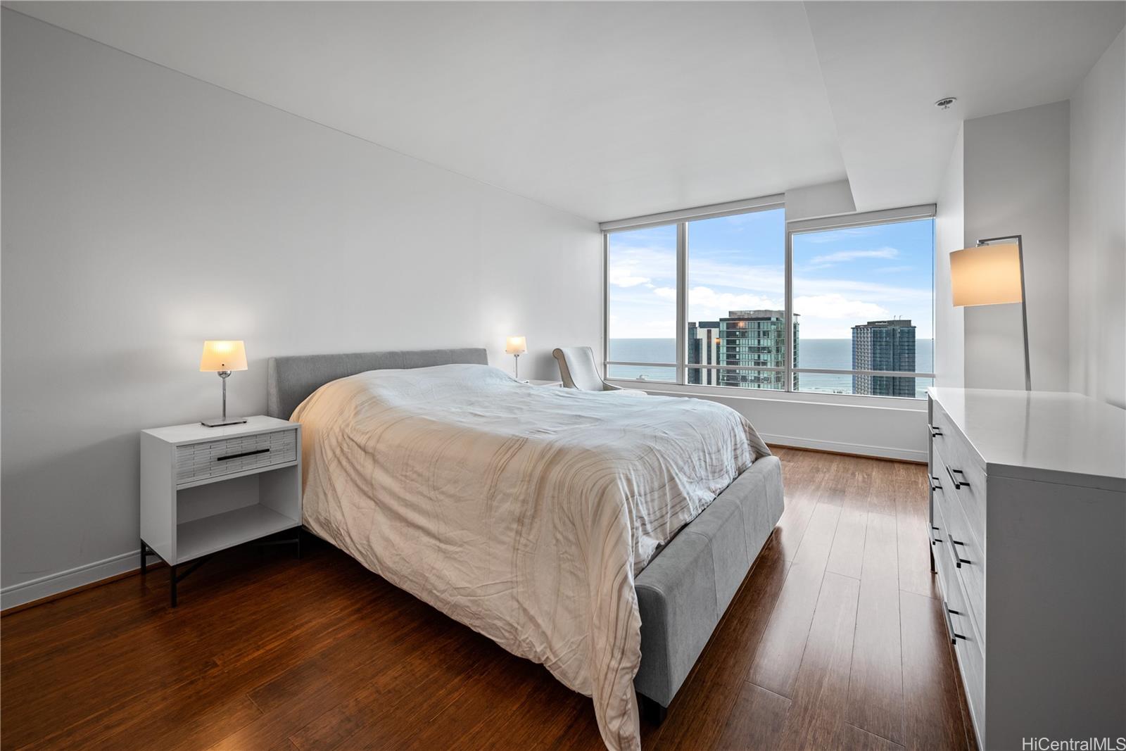 Spectacular ocean view from this penthouse unit! Rarely available larger 3 bedrooms, 3 bath with den. Two side by side parking stalls near the elevator. Beautiful hardwood flooring and granite counter top. The amenities include swimming pool, jacuzzi, recreation deck, BBQ cabanas, party pavilion, theaters, fitness center, sauna, and a gated park. Conveniently located near Ala Moana, Ward Village, beaches, shops and restaurants. Please see virtual tour. One or more photos have been enhanced.