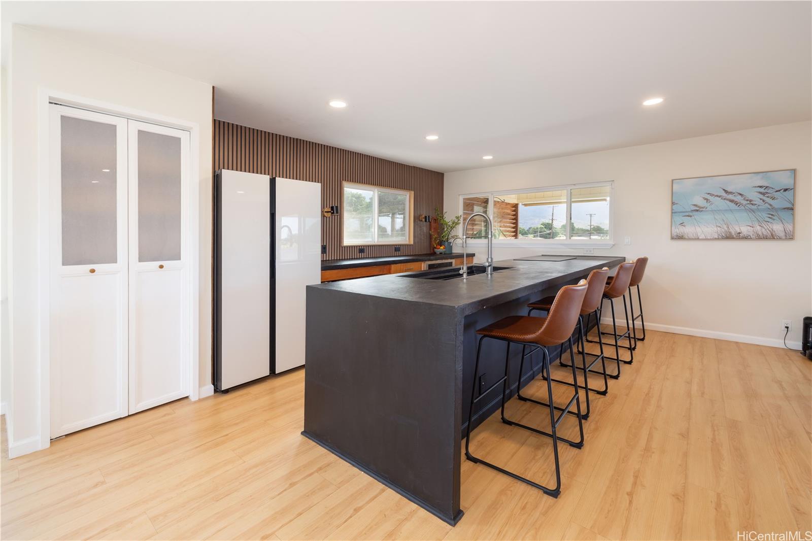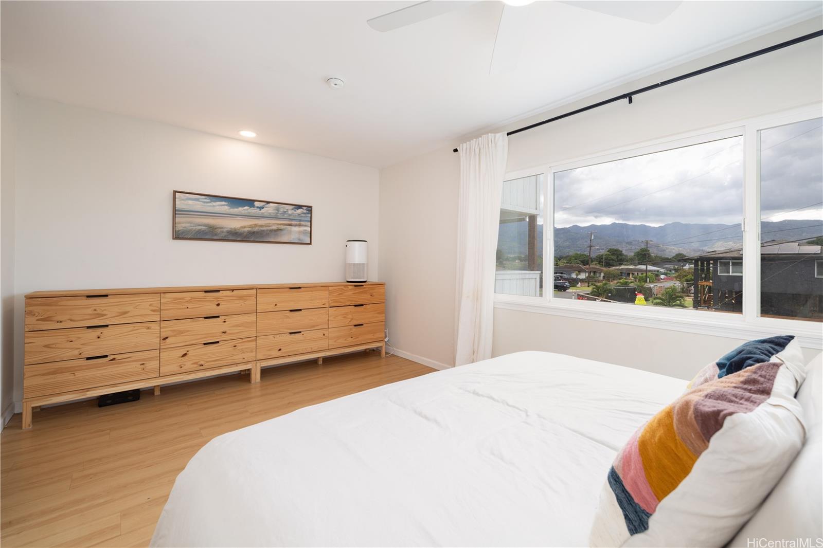 Nestled on a peaceful corner lot, this thoughtfully designed residence features a flexible floor plan ideal for multi-generational living or rental income potential. Every detail reflects quality craftsmanship and contemporary island style. Two bedrooms, 1 bath downstairs, and 1 bedroom, 1 bath + den upstairs. Easily turn the den into another bedroom. Spacious open-concept living and dining areas with abundant natural light. Modern kitchen with premium finishes and stainless steel appliances. Expansive covered lanai for relaxing or entertaining with sweeping country and mountain views!