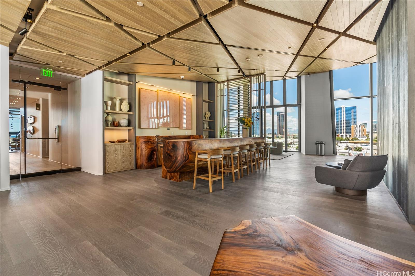 Koulaは、TIME誌の2019年「最も影響力のある100人」に選ばれたジーン・ギャングによってデザインされました。この1ベッドルームユニットは、限られた室内空間を最大限に活用するよう効率的に設計されており、アメニティも充実しています。Inspiration Furnitureで購入した家具も備え、すぐに入居可能です。ハワイアンアイランドスタイルとモダンなデザインが融合したリゾートスタイルのアメニティが充実しており、設備の整ったフィットネスセンター、ラッププール、2つのスパ、プールサイドイベントルーム、カバナ、グランドラナイとラウンジ、バーベキューパビリオン、ゲストスイート、ドッグパークなどが備わっています。ホールフーズマーケットも徒歩圏内にあり、1ブロック以内には居酒屋、イタリアン、焼肉など、様々なレストランがあります。