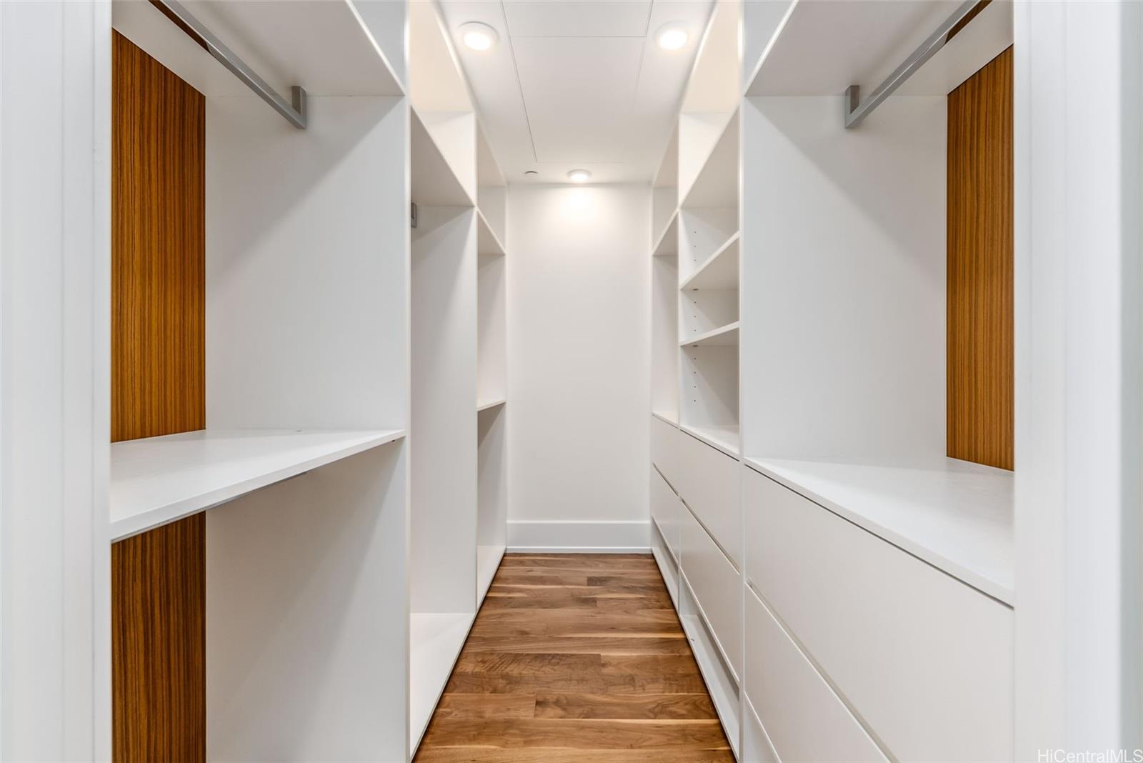 Exceptional 2-bedroom, 2-bath residence in Ward Village, a master-planned community attracting both local and global residents with its blend of urban convenience and modern refinement. This larger 2 bedroom condo offers an open-concept floor plan, ideal for entertaining, and features high ceilings throughout. The chef’s kitchen is equipped with Miele appliances, including a gas range and wine refrigerator, and a breakfast bar with upgraded pendant lighting. Additional features include a separate laundry room with built-in shelves, upgraded wood floors in the bedrooms, motorized shades throughout and an air-conditioned storage room (on the 5th floor). Enjoy stunning views of the ocean by day and twinkling city lights by night from almost every room. Residents have access to world-class amenities, including a glass-bottom pool, whirlpool, tennis court, golf simulator, BBQ cabanas, a chef's kitchen and dining room, gym, theatre, guest suites and other amenities that rival white-glove condos in other global luxury markets. Conveniently located within minutes to Whole Foods, beaches, the marina, Urgent Care and hospitals, shopping and dining.