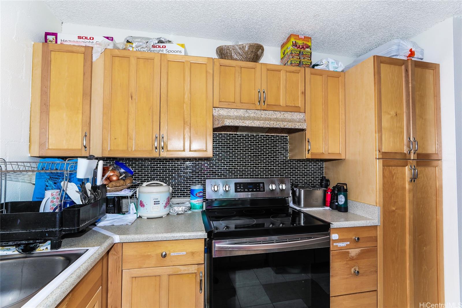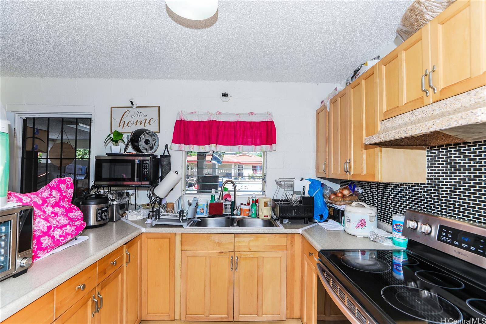 This beautiful and well-maintained home is equipped with 4 bedroom, 2 full bath with 2 parking in the carport. The flooring is with ceramic tile throughout the bedrooms, kitchen and bathroom with easy maintenance. The kitchen and bathrooms are fully renovated as well making it modernized and spacious. The home is in close proximity to public parks, schools, freeway access, Waikele Shopping Center, Seafood City etc.
