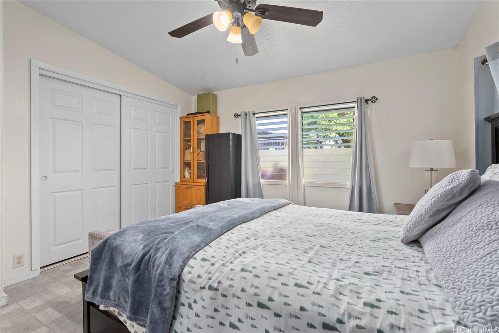 This beautiful multi-generational living 2-story home is available for those investors and/or primary occupant buyers located in the heart of Pearl City at Momilani neighborhood. There are three living areas with full kitchen/kitchenette and laundry. A spacious 3 bedroom with 2 full baths at the lower front of the home with ceramic tile flooring, updated bathroom in the primary room and a large bedroom with a window-type AC unit along with an enclosed storage area within the home that can be turned into a room making it a possible fourth bedroom if need be. The 2 bedroom with 1 full bath at the lower back with ceramic tile flooring, updated bathroom and kitchenette. The 3 bedroom with 2 full baths at the upper level with ceramic tile flooring, updated kitchenette and an enclosed lanai for a storage area as a bonus. A half bath on the lower level access from the exterior of the home. In addition, there are 44 photovoltaic panels (leased) that is based on consumption with a new roof installed in May 2025. The property is in close proximity to public schools, public parks, Pealridge, Walmart, Foodland Farms, H-Mart, freeway access, and more. Number of rooms does not match tax records.
