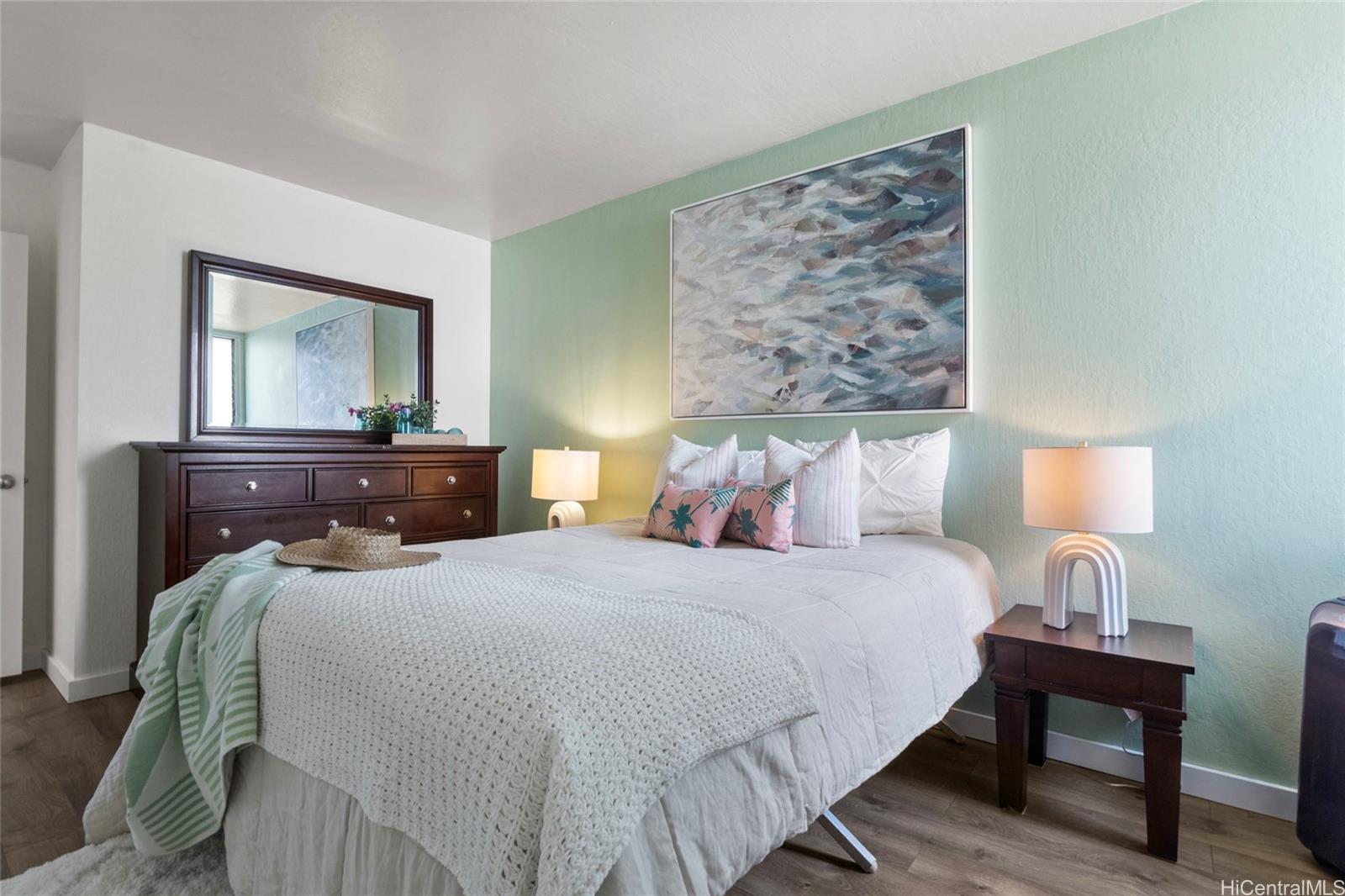 Condo being offered through USA Home Bids All offers must be submitted through platform, See supplemental docs and agent remarks for agent and buyer FAQ. Welcome to Makaha Plantation unit 85C, top floor with beautiful ocean and sunset views, high ceilings and no one above you. Spacious 2 bedroom 1 bath, partially renovated in 2021, bathroom flooring and new paint. Kitchen expanded from gally to open flow. Priced to sell, and a must see next to pool and new jacuzzi. Makaha Plantation is gated and well maintained complex. Includes basketball court and clubhouse for parties. Fruit trees on property, quiet serene and highlights the beauty of Makaha Valley. Best ocean view of all C units currently on the market, this is a must see unit