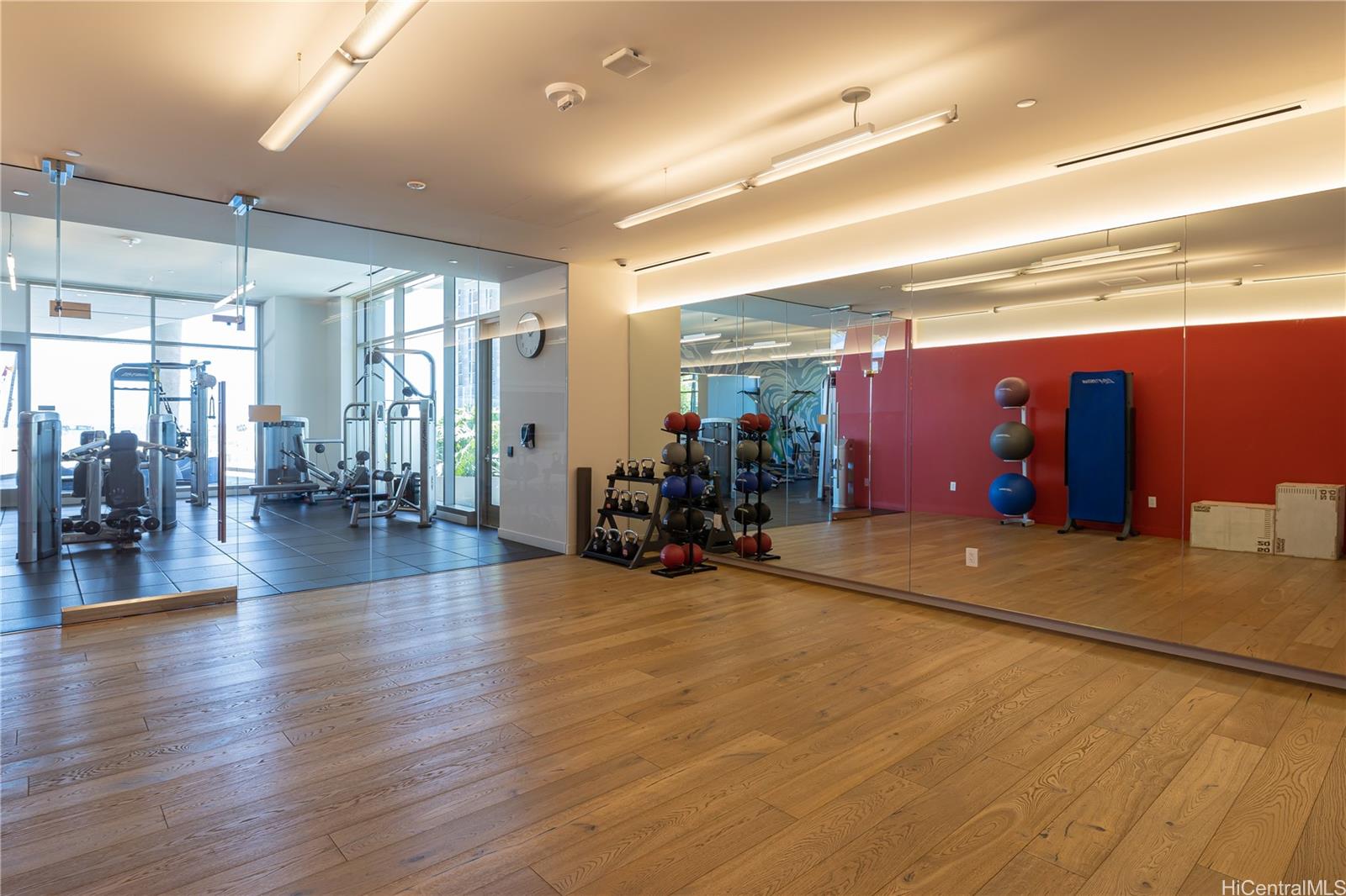Excellent 1/1 home at Ae'o with ocean, harbor and mountain views! At 739sf, this is the largest 1/1 offered at the lowest price/sf. This must-see unit has premium Bosch stainless steel appliances, spacious bathroom with deep soaking tub, custom built-ins in kitchen and walk-in closet, engineered hardwood floors, floor-to-ceiling windows and bump out window/door for fresh air. Unit also comes with a full size W/D in the extra utility room and one parking stall with a separate storage unit. Resort-like amenities include a 24/7 hosted front desk, rooftop terrace, lap and family pool, fitness center, locker rooms with sauna and steam room, theater, play ground, guest suites, outdoor bbq, dining cabanas. This Ward Village condo features the best of urban lifestyle in paradise with direct access to Whole Foods market, numerous dining and entertainment options, beaches, shopping, Consolidated Theaters, Ala Moana Shopping Center all within a few blocks!