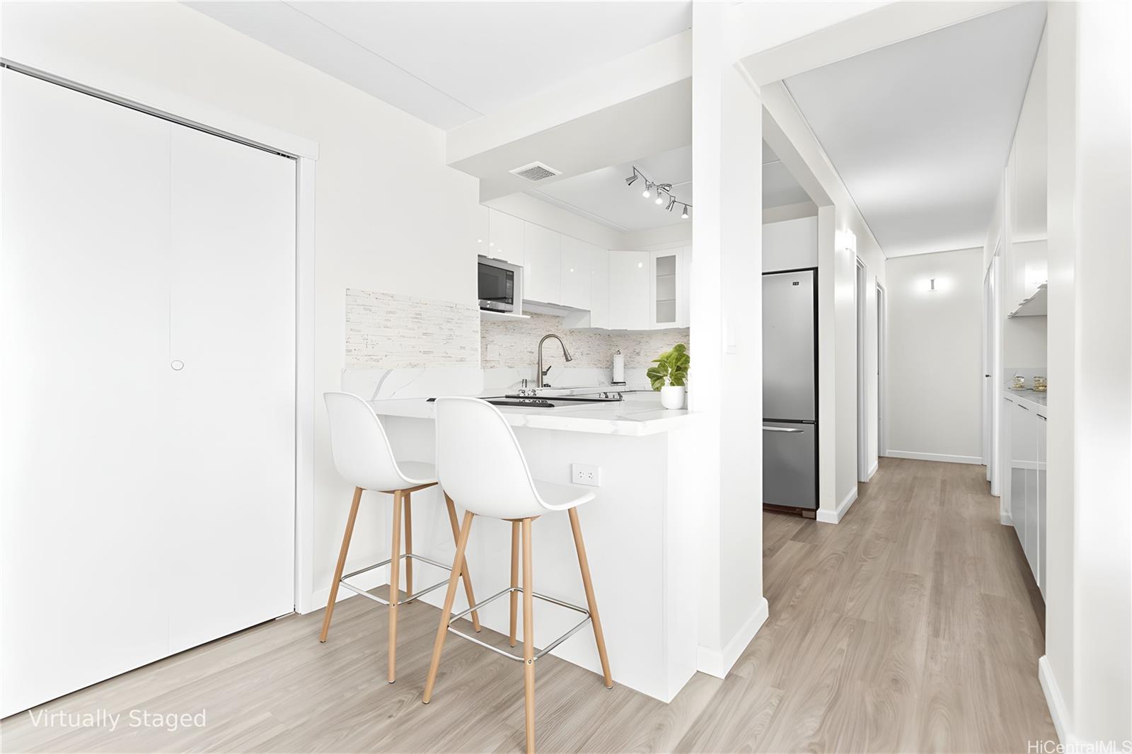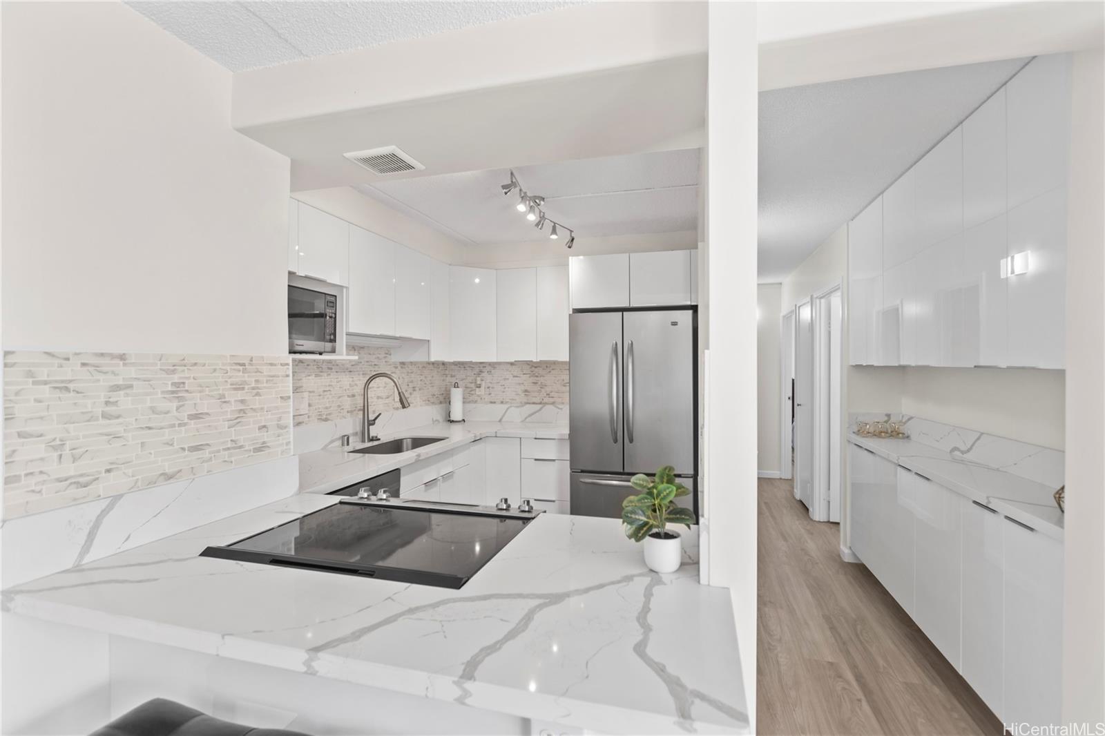 ワイキキの中心部、ケオニ・アナでアイランドライフをお楽しみください。美しく改装され、すぐに入居可能なこのコンドミニアムからは、フォート・デルシー公園に沈む夕日を眺めることができ、すぐそばに海があります。明るくモダンなインテリアに足を踏み入れると、光沢のあるソフトクローズキャビネット、クォーツカウンタートップ、そして新品のステンレス製家電を備えた真新しいキッチンが目に入ります。バスルームは、新しいタイルの壁、最新の洗面台、そして新しいシャワーでセンス良くリフレッシュされています。家全体に高級防水ビニールプランクフローリングが敷かれ、内外装は新しく塗装され、新しい窓用エアコンとリビングエリアにはスプリットエアコンが設置されています。この細部にまでこだわってアップグレードされた2ベッドルーム、1.5バスルームのレジデンスを、いち早くお楽しみください。ケオニ・アナは、24時間体制のセキュリティ、十分な広さのゲスト用駐車場、バーベキューエリア、そして美しいウォーキング/ジョギングコースを提供しています。屋根付きのベランダから公園と山の景色をお楽しみいただけます。ワイキキ ビーチ、世界クラスのレストラン、ショッピング、そして最高の島暮らしからわずか数分です。