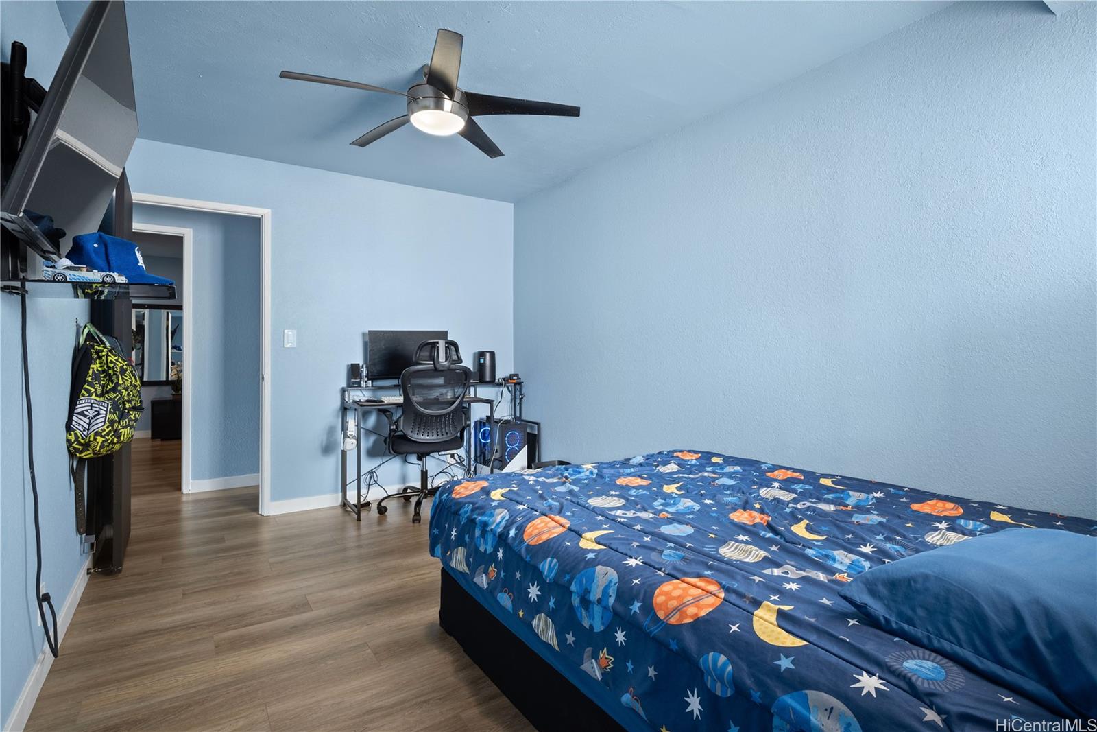 Priced below tax assessed value for this rarely available CORNER LOT, single level home with BRAND NEW ROOF just done in August of 2024, in the highly sought after Waipio Gentry community! 33 leased SOLAR PV panels with 3 BATTERIES gives you a low monthly electric bill. Refrigerator and dishwasher were just replaced in 2024, interior painted, vinyl plank flooring added, new ceiling fans also added, as well as recessed lighting outside. An interior renovation had been done in 2017 which included a new kitchen and bathrooms. The HUGE primary bedroom is your private oasis with an ensuite bathroom and room enough for a full office! Large bonus room off the living room which can be used as a fourth bedroom. Security equipment can stay. Garage has a retractable screen door and smart door opener which can be controlled from your phone. Outdoors, you’ll enjoy a large, fenced-in backyard perfect for gatherings, and the storage shed can stay. Located in a friendly neighborhood, this home is a short distance to community parks, playgrounds, military bases, Costco, shops, restaurants, Waikele Shopping Center and freeway cutoffs. 1 enhanced photo. Schedule your private showing today!