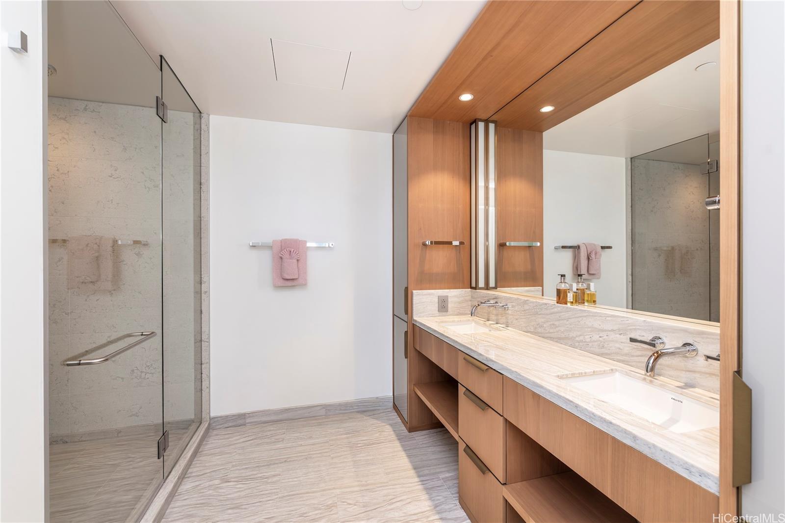 ラグジュアリーと利便性の理想的な融合をお探しですか?ワードビレッジの最新開発物件、ビクトリアプレイスへようこそ。建物のダイヤモンドヘッド角に位置する人気の「00」スタックからは、最前列ならではの比類なきオーシャンビューをお楽しみいただけます。明るい色調で仕上げられたユニット1800は、サブゼロ&ウルフの家電製品、スタジオベッカーのキャビネット、アメリカンウォールナットのフローリング、そして和風のウェットルームを備えています。5階のアメニティデッキへ降りて、リゾートにも匹敵する一流のアメニティをお楽しみください。居住者は、ラッププール、サンセットインフィニティプール、男女別スパ、ワインルーム、フィットネスセンター、ラウハラプールハウスなど、様々な施設を独占的にご利用いただけます。ユニットの駐車場は、建物1階、エレベーター入口付近にあります。また、駐車場2階には広々とした収納スペースもございます。