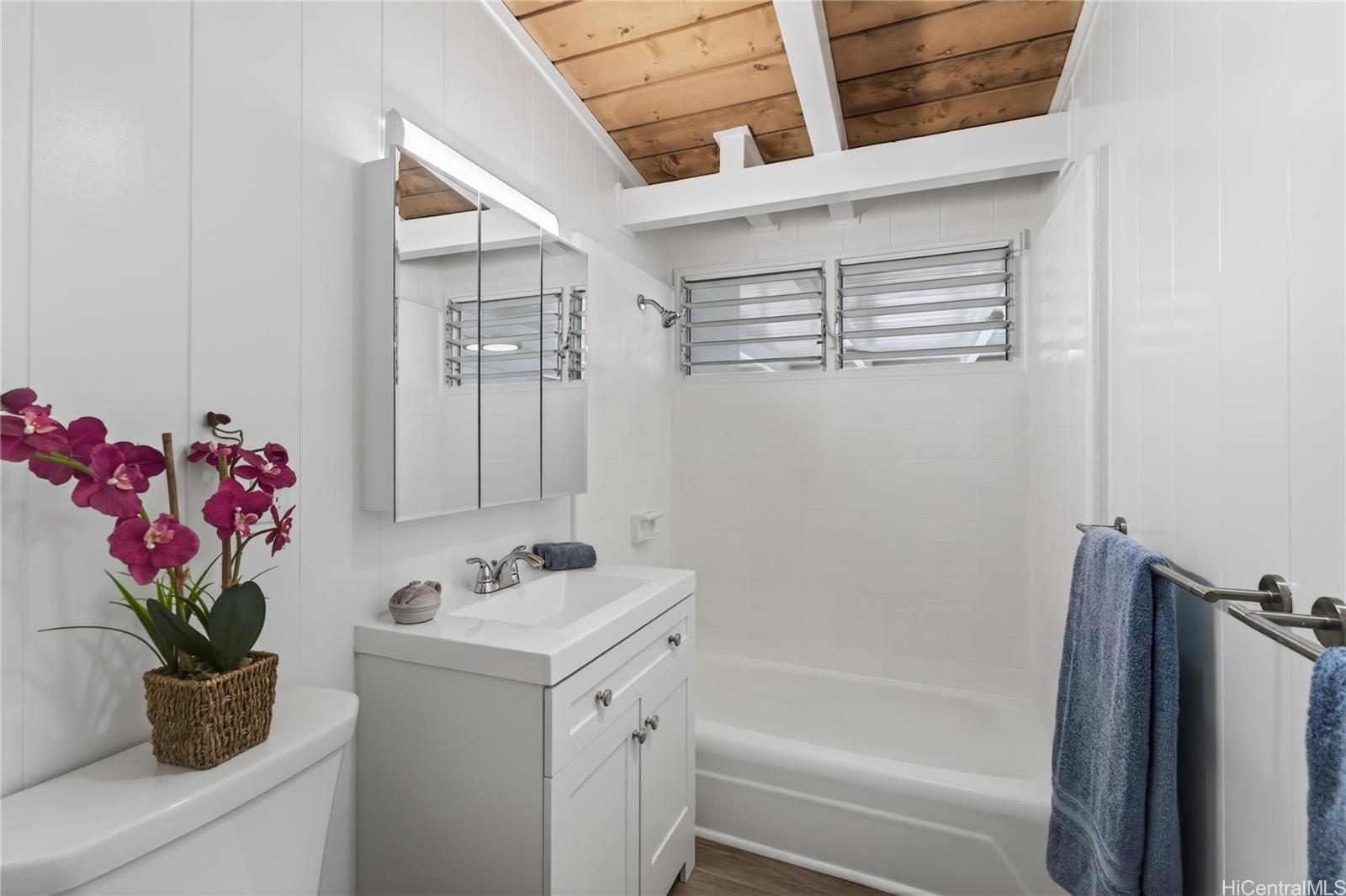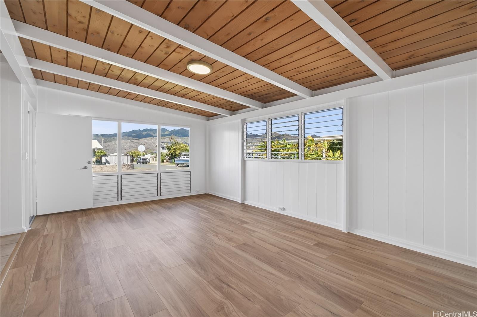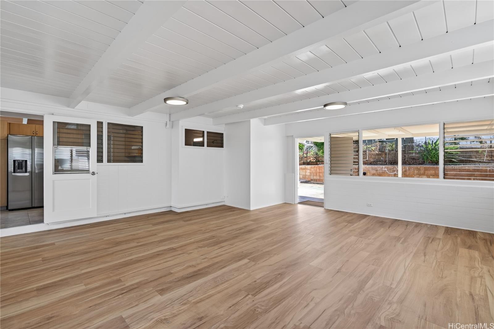 Welcome to this charming single-level home in the heart of Hawaii Kai. This move-in-ready residence features fresh paint inside and out, new luxury vinyl plank (LVP) flooring, a brand-new refrigerator, and a new range. The thoughtfully designed layout offers comfort and flexibility—perfect for everyday living and entertaining. A hallway vanity adds convenience, while the spacious family room provides versatile options for gatherings, a home office, or a play area, and includes an oversized storage room for added functionality.
