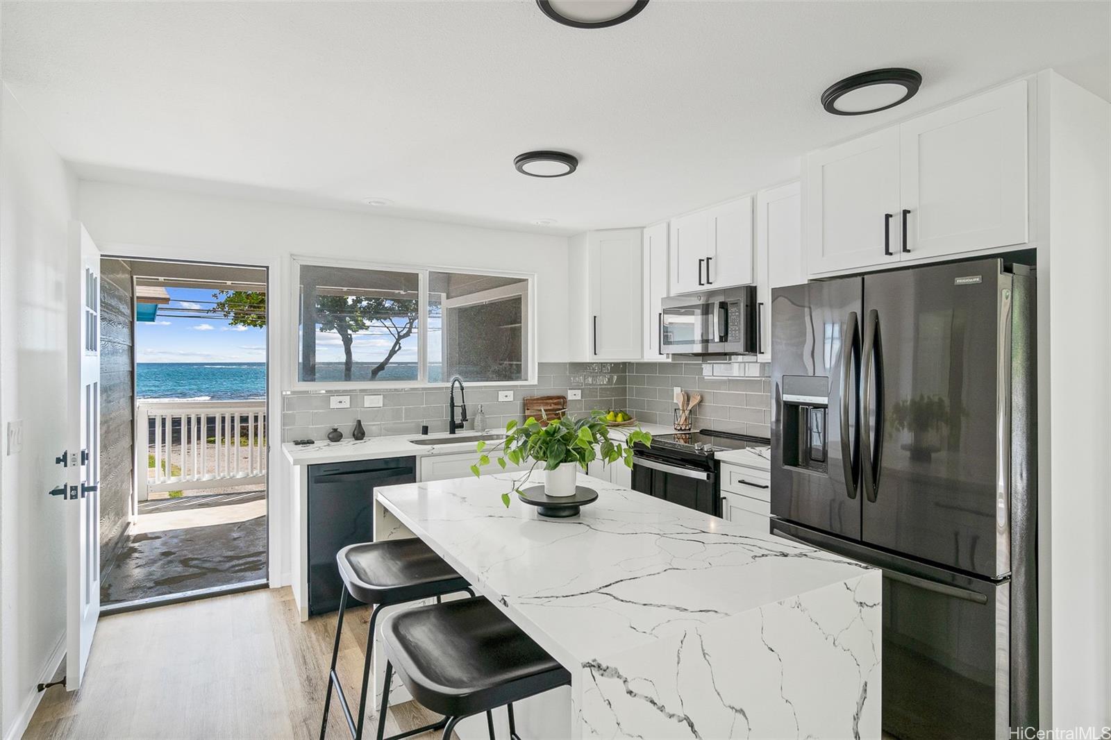 100万ドル以下で、オアフ島のビーチまで歩いて行ける物件が購入できます!この魅力的な全面改装済みの住宅は砂浜からわずか数歩のところにあり、朝の散歩や海水浴、またはただ海岸のパノラマビューに浸るのに最適です。屋内はオープンコンセプトのレイアウトで、リラックスしたり、大切な人と集まったりするのに最適な明るく居心地の良い空間を作り出しています。屋外には、居心地の良いパティオとプライベートバルコニーがあり、爽やかな潮風、穏やかな夕日、そして美しい山の景色を最前列で楽しめます。2台分のガレージと階段でアクセスできるため、便利で安全です。ノースショアの探索に最適なロケーションで、ポリネシア文化センター、バンザイパイプライン、美しいビーチ、地元の飲食店、市場、アウトドアアクティビティが近くにあります。オアフ島で最も象徴的な観光スポットの1つであるクアロアランチも、風光明媚なドライブで行くことができ、乗馬、ATVツアー、映画のロケ地、そして家族向けの忘れられない冒険を提供しています。静けさを求めるか、冒険を求めるか、あるいはその両方を求めるかに関わらず、このビーチフロントのサンクチュアリは究極のハワイ旅行をお届けします。この滞在はすぐに終わります!