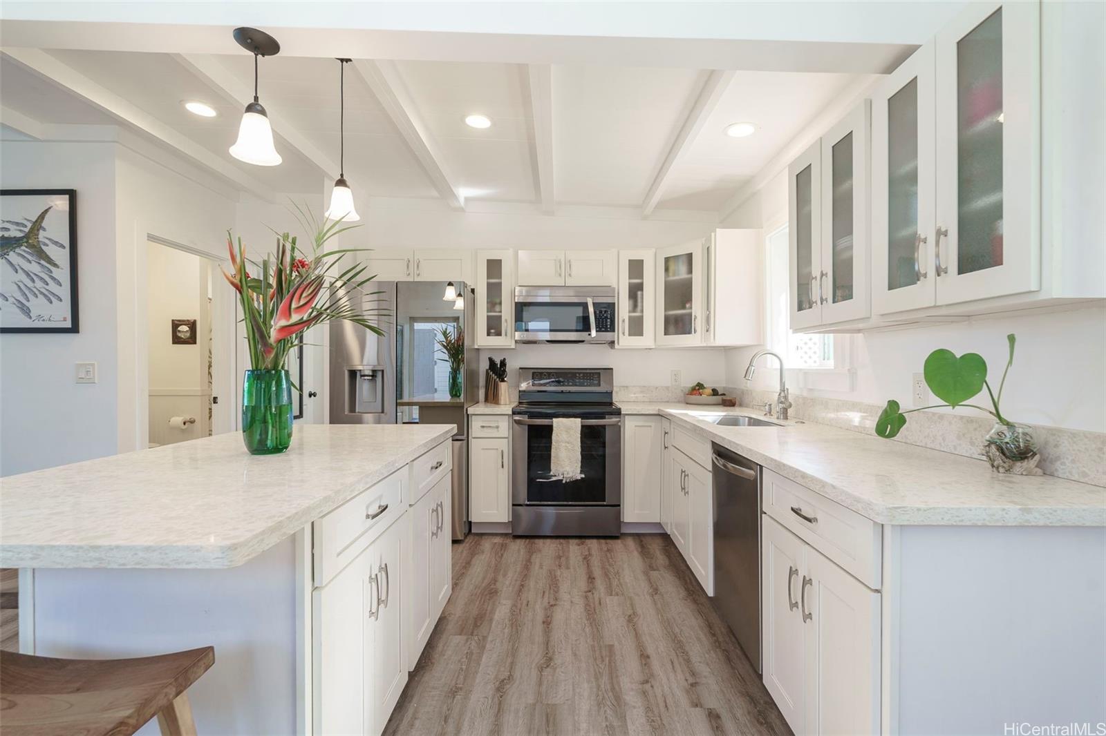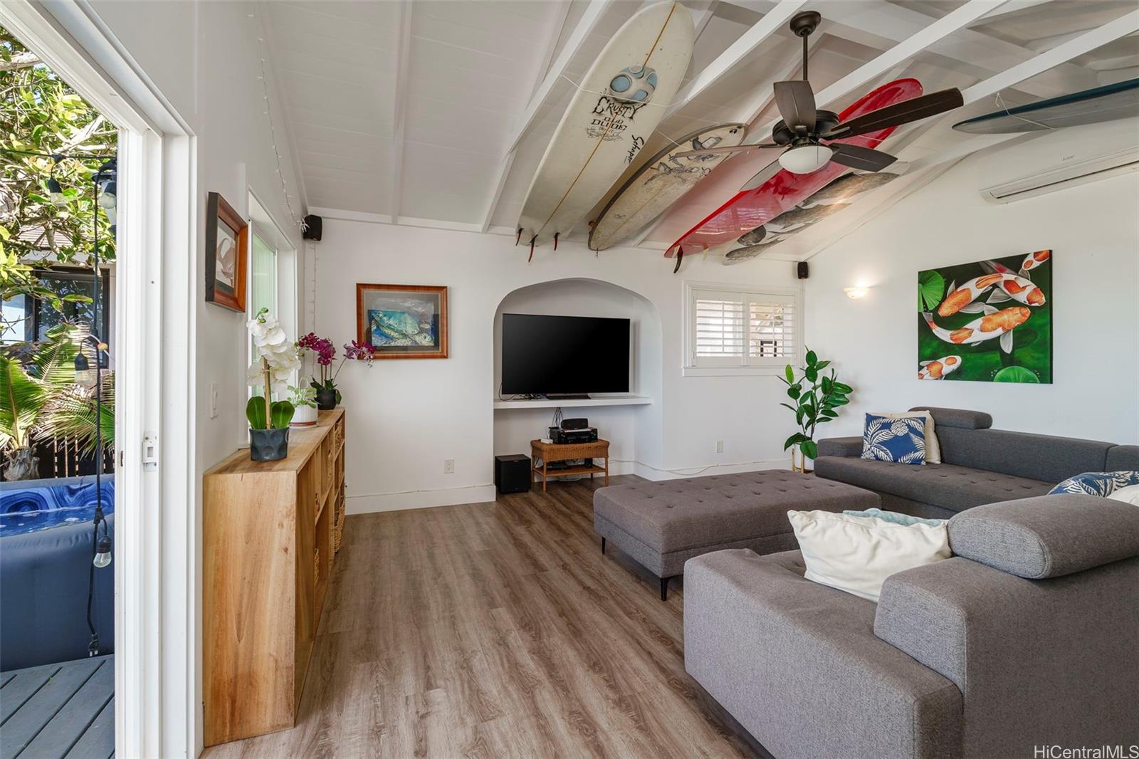 上品に改装された、すぐに入居可能なビーチフロントコテージが、モクレイアの閑静なエリアであなたをお待ちしています。古き良きハワイを彷彿とさせる静かな海辺の道、クロジエ・ドライブ沿いに位置し、ノースショアの交通渋滞から離れた場所にありながら、ホノルル国際空港まで車でわずか45分という好立地です。魅力的な2ベッドルーム、1バスルームのこの家は、2つの混雑していないサーフブレイクの間に位置し、絵のように美しいフォルス・カマニの木が海の景色を縁取っています。家は思慮深く改装され、2年前に建てられたばかりの屋根の下に、24枚の太陽光発電パネル、2つのテスラ・パワーウォール・バッテリー、そして快適なスプリットエアコンを備えています。アオウミガメが頻繁に訪れる砂浜は、長い散歩に最適で、冬には雄大なザトウクジラが沖合でジャンプする姿も見られます。沖合の大きなサンゴ礁が天然の波の緩衝材となり、冬のサーフィンシーズンでも正面に静かで家族連れにぴったりの砂浜の入り江が広がります。ここは単なる住居ではなく、歴史の遺産です。オアフ島を真に知る人々がこの場所を愛する理由であるノースショアのアロハ精神をぜひご体感ください。初回オープンハウスは12月20日(土)と12月21日(日)の午後2時から5時まで。