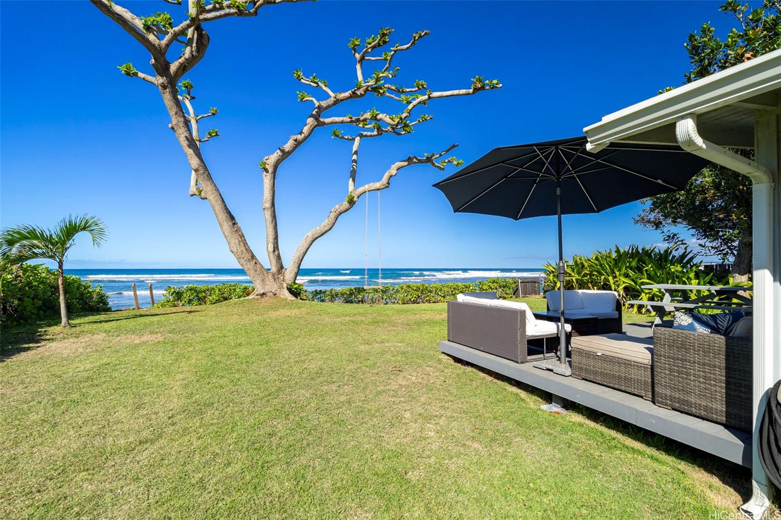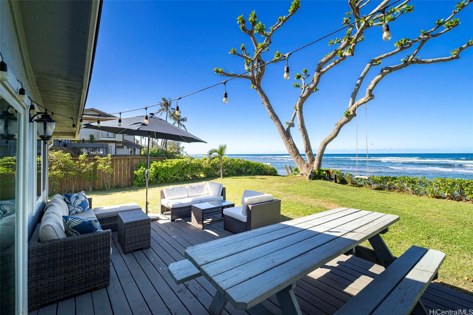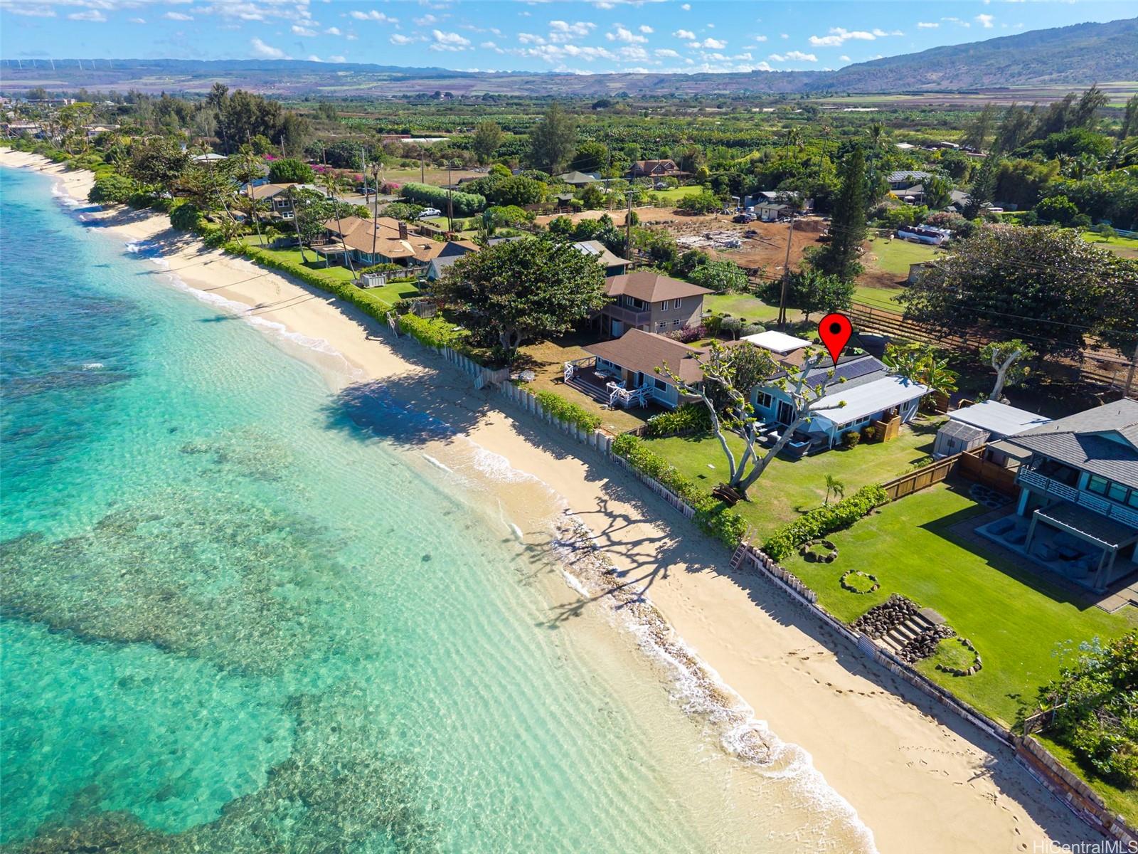This tastefully renovated, turnkey beachfront cottage awaits you on a highly coveted, serene stretch of Mokuleia. Situated on Crozier Drive, a peaceful, waterfront lane reminiscent of vintage Hawai'i and away from the North Shore’s traffic bottleneck, yet only an easy 45-minute drive to Honolulu International Airport. The charming 2-bedroom, 1-bath home is positioned perfectly between two uncrowded surf breaks, with a picturesque False Kamani tree framing the ocean view. The home has been thoughtfully remodeled and features 24 owned photovoltaic panels, two Tesla Powerwall batteries, and split AC for comfort beneath a couple years young roof. The sandy beach frontage where Green Sea Turtles frequently visit is perfect for long walks and majestic Humpback Whales breach offshore in the winter. The substantial offshore reef system creates a natural wave buffer, creating a tranquil, family-friendly sandy swimming cove out front even during the winter surf season. This is more than a home; it's a legacy—come experience the North Shore aloha that makes this location a favorite of those who truly know Oahu. First Open Houses Saturday 12/20 and Sunday 12/21 from 2-5:00.