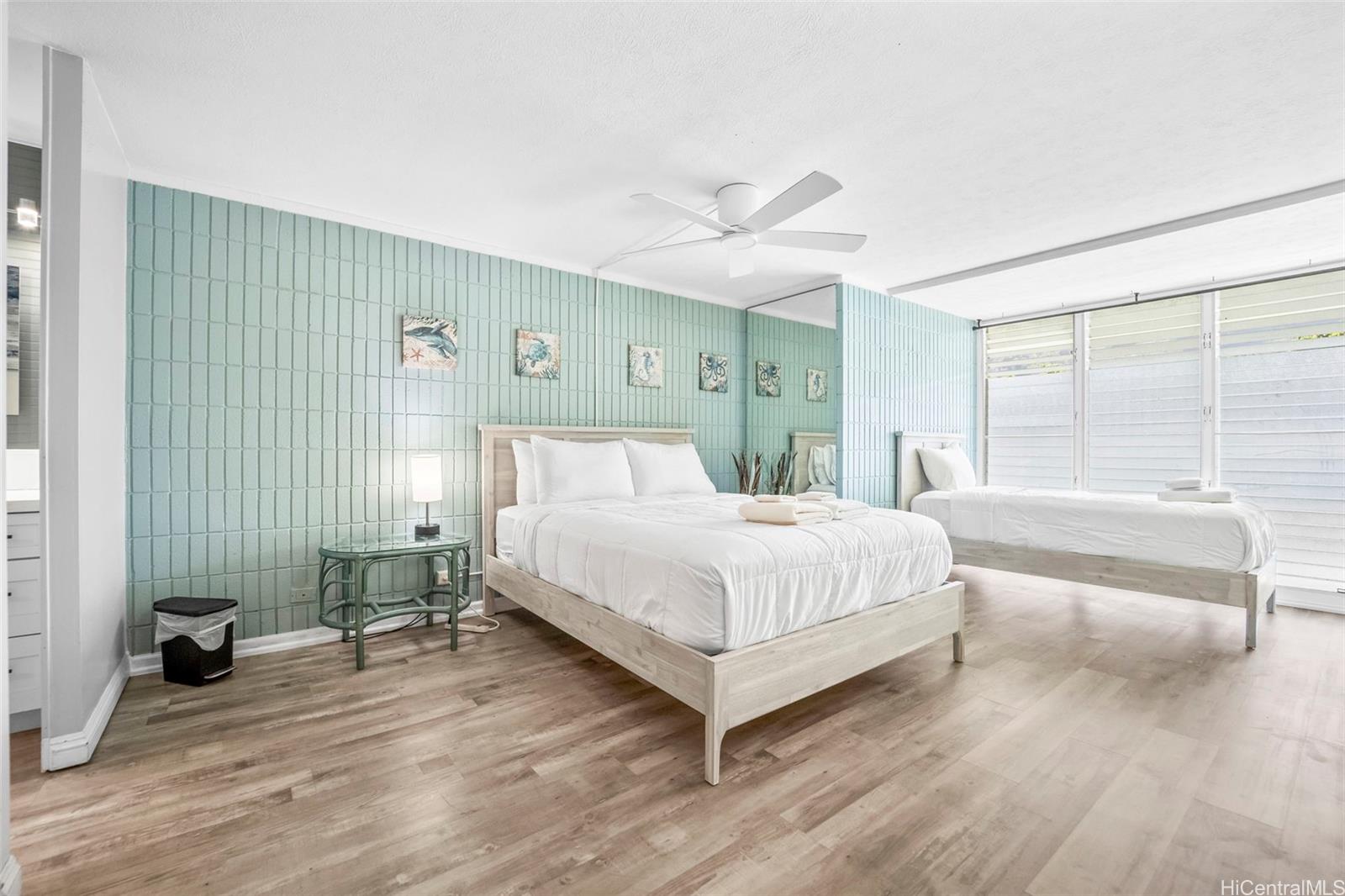 This unit offers more interior living space and a larger lanai than most 1-bedroom units in the complex, providing a bright and open layout. Fully renovated in 2023, upgrades include furnishings, appliances, cabinetry, and modern finishes throughout. The unit includes one assigned parking stall. The oceanfront community features resort-style amenities including a swimming pool, fitness center, BBQ area, and direct beach access. The unit is currently operated as a short-term rental. Buyers are advised to perform their own due diligence regarding zoning, use, permitting, and applicable regulations. The building is in the last expected year of a multi-year renovation expected to be completed end of 2026. HOA fees beginning January 2026 are $1,598 per month, with a 2026 renovation construction assessment of $2,238 per month.