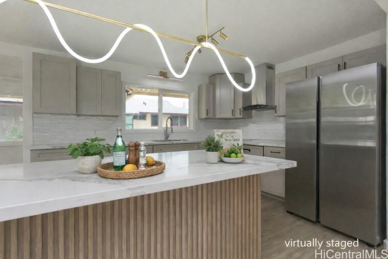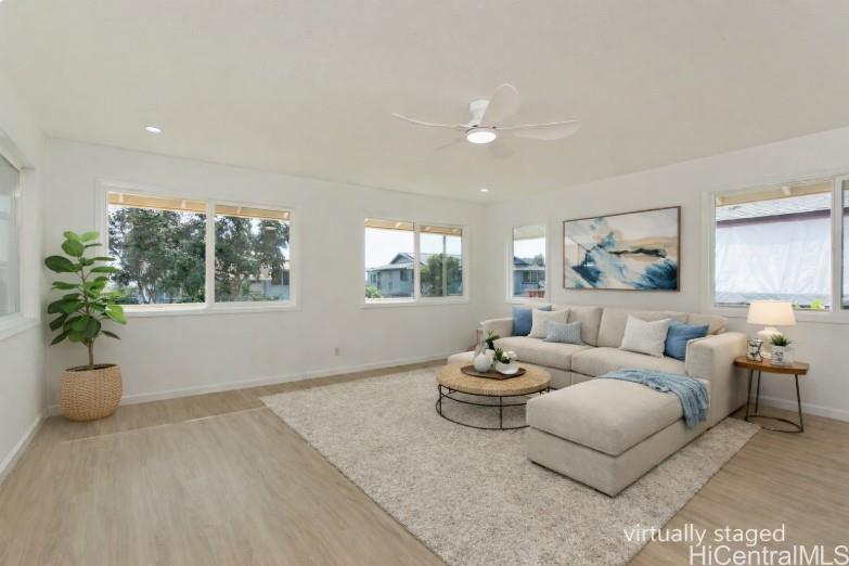 NO KIDDING! THIS IS A MUST SEE! Fabulously totally renovated huge home with good quality materials and design! This house can be separated into 2 living units - bottom floor 3 bedroom/1 bath and top floor 3 bedroom/2 bath with interior and exterior stairs and separate entrances if desired. New interior/exterior paint, new waterproof luxury v plank flooring, brand new roofing, BRAND NEW KITCHEN, stainless steel appliances, new washer/dryer, all BRAND NEW bathrooms, new ceiling fans, new light/plumbing fixtures and new water heater, and MUCH MORE! Amazing potential for Foster care, CARE HOME, multi-generational living, or other similar uses. HUGE LANAI UPSTAIRS extending from the versatile family room. Large parking area and nice level front yard for entertaining. Conveniently located near Waikele Shopping Center, schools, restaurants, places of worship, freeway and much more. This will not last long.