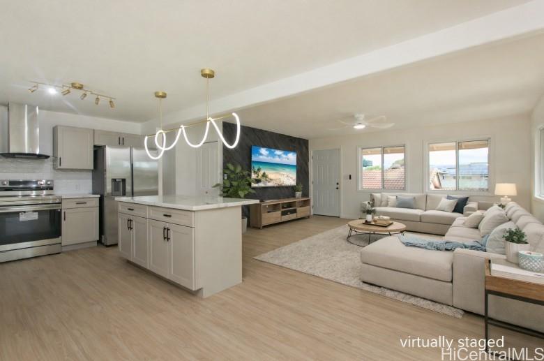 オープンハウス: 12/20 (土) および 12/21(日) 午後 2-5 時、12/28/25 (日) 午後 2-5 時 冗談じゃない! これは必見です! 良質の材料とデザインで全面改装された素晴らしい巨大な家です! この家は 2 つの居住ユニットに分割可能 - 下の階は 3 ベッドルーム/1 バスルーム、上の階は 3 ベッドルーム/2 バスルームで、ご希望に応じて内外階段と別々の入り口があります。新しい内外ペイント、新しい防水高級 V 板フローリング、真新しい屋根、真新しいキッチン、ステンレス製家電、新しい洗濯機/乾燥機、すべての真新しいバスルーム、新しい天井ファン、新しい照明/配管器具、新しい給湯器、そしてその他多数! 里親家庭、高齢者ホーム、多世代住宅、またはその他の同様の用途に素晴らしい可能性を秘めています。広々とした駐車場と、ゲストをもてなすのに最適な平らな前庭。ワイケレ・ショッピングセンター、学校、レストラン、礼拝所、高速道路など、便利な場所に位置しています。この物件はすぐに売れてしまうでしょう。