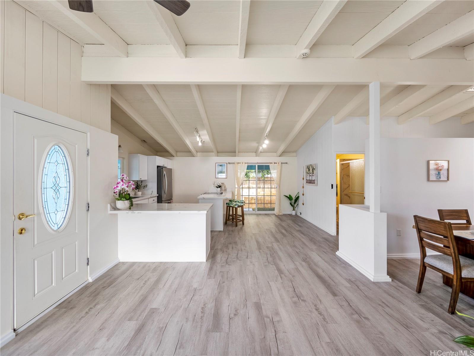 Enjoy a prime East Oahu location just minutes to Costco Hawaii Kai, top schools, parks, the Hawaii Kai Marina, and some of Oahu’s best sandy beaches. The updated interior includes dishwasher, stove, and two full-size refrigerators, offering extra flexibility for entertaining, meal prep, or multi-generational living. Spacious backyard with mature fruit trees, including Noni, creating a private tropical retreat perfect for relaxing, gardening, or hosting gatherings. Street parking, additional driveway space and a covered carport adds daily convenience, and the lot provides potential for outdoor living, expansion, or future customization.