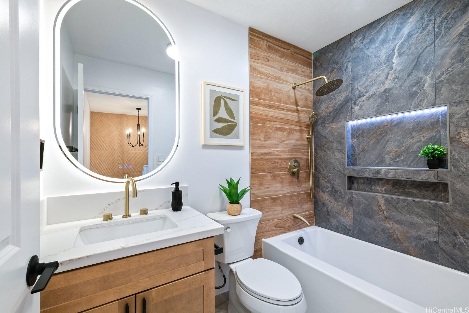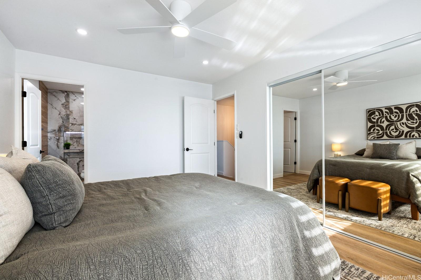 Beautifully renovated and turnkey, this spacious 4-bedroom, 2.5-bath Aiea townhome offers just under 1,500 square feet of thoughtfully designed living space, perfect for growing families. The home features a tasteful modern renovation, all new appliances, and a secure covered patio area ideal for relaxing or entertaining. Residents enjoy community amenities including a playground for children, two swimming pools, and ample guest parking. Conveniently located within walking distance to Pearlridge Center, just 10 minutes to the airport, and close to shopping, dining, and major freeway access, this move-in-ready home offers exceptional value in today’s market and combines comfort, style, and unbeatable convenience.