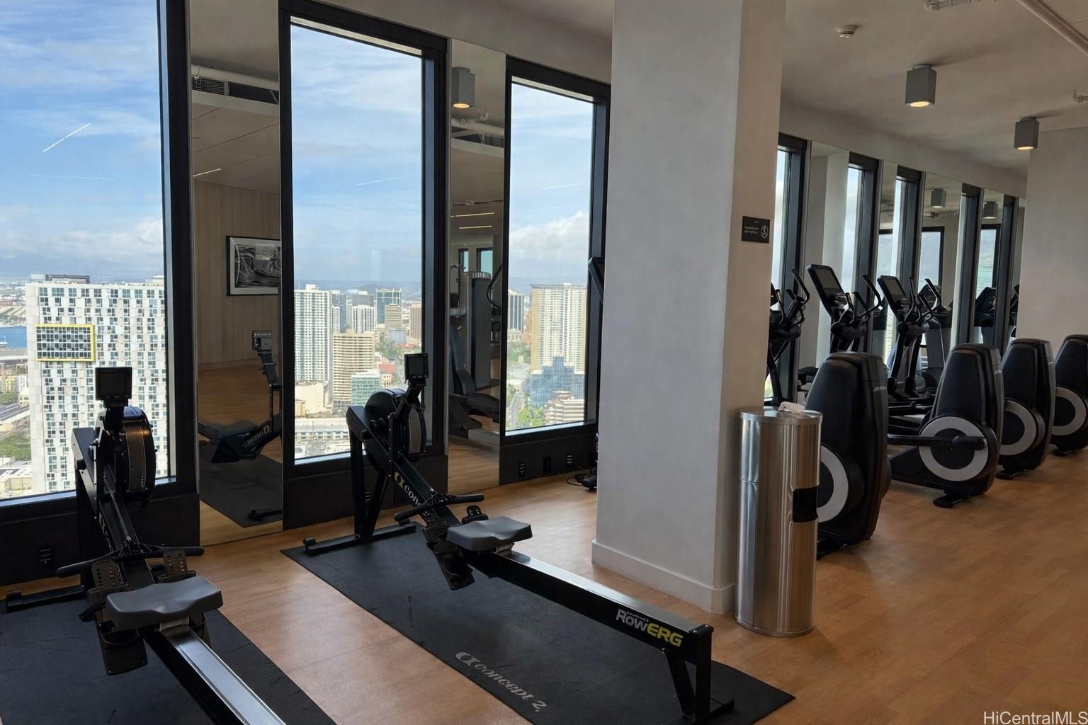 A'ali'i provides resort-style amenities such as the 42nd-floor Sky Lounge with 360-degree views, a modern fitness center, yoga room, pool, cabanas, BBQ areas, private lounges, and 24-hour security. Perfectly positioned steps from Whole Foods, Ala Moana Beach Park, dining, cafés, and shopping. Whether for a primary residence, getaway, or investment, this rare storage-included unit delivers exceptional convenience, value, and style in the heart of Ward Village.