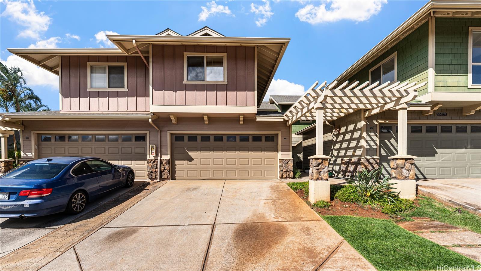 Welcome to Ocean Ridge at Makakilo—where comfort, convenience, and cooler island living come together. This well-maintained 3-bedroom, 2.5-bath townhome is perched several hundred feet above sea level on the slopes of the Waianae Range, offering cooler temperatures and refreshing trade winds year-round. Built in 2006, this home is truly move-in ready with a freshly painted interior and a functional, open layout ideal for modern living. Enjoy the convenience of a spacious 2-car garage with washer and dryer, plus two additional parking spaces on the garage apron—rare four-car parking for a townhome. **VA Assumsable rate to qualified buyers with COE at 2.25 with approx 526k balance. World-class Ko Olina resorts and beaches are a short drive away, perfect for weekend relaxation or sunset walks. Commuters will appreciate quick access to the H-1 freeway, making travel across the island easy and efficient. A fantastic opportunity to enjoy cooler Makakilo living with urban conveniences close by—don’t miss it. Home warranty included through 12/2029 with Liberty Home Guard. Fees include: fiber optic internet, water, trash, etc.