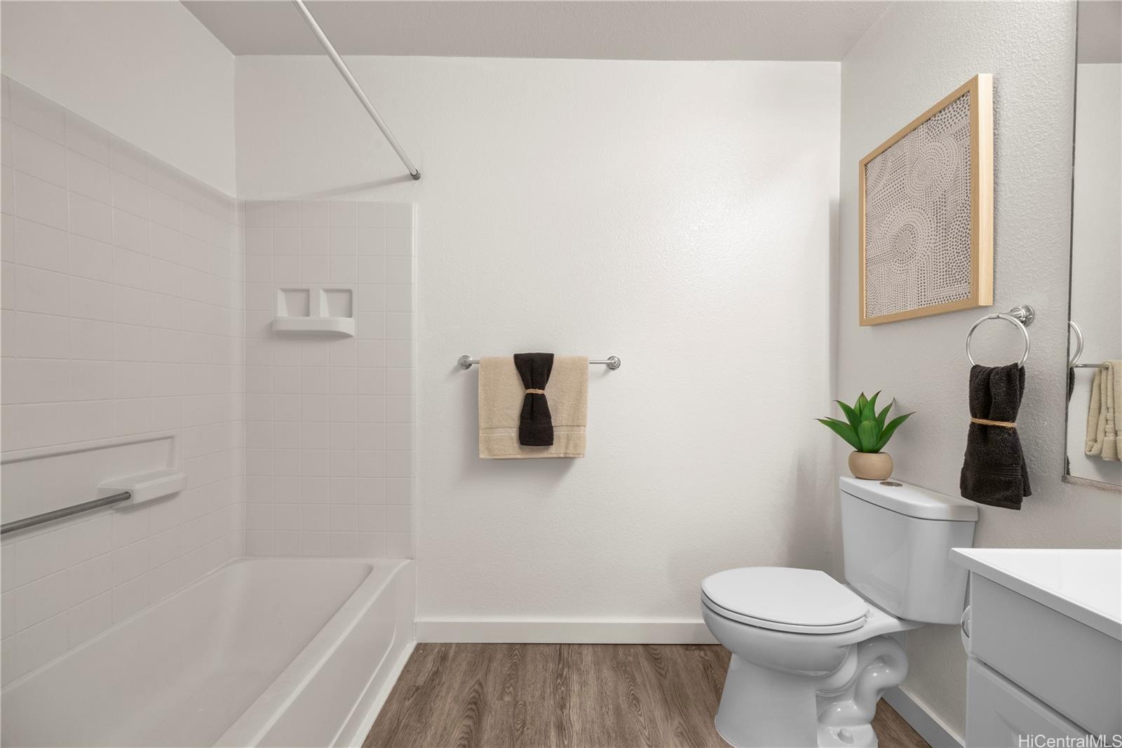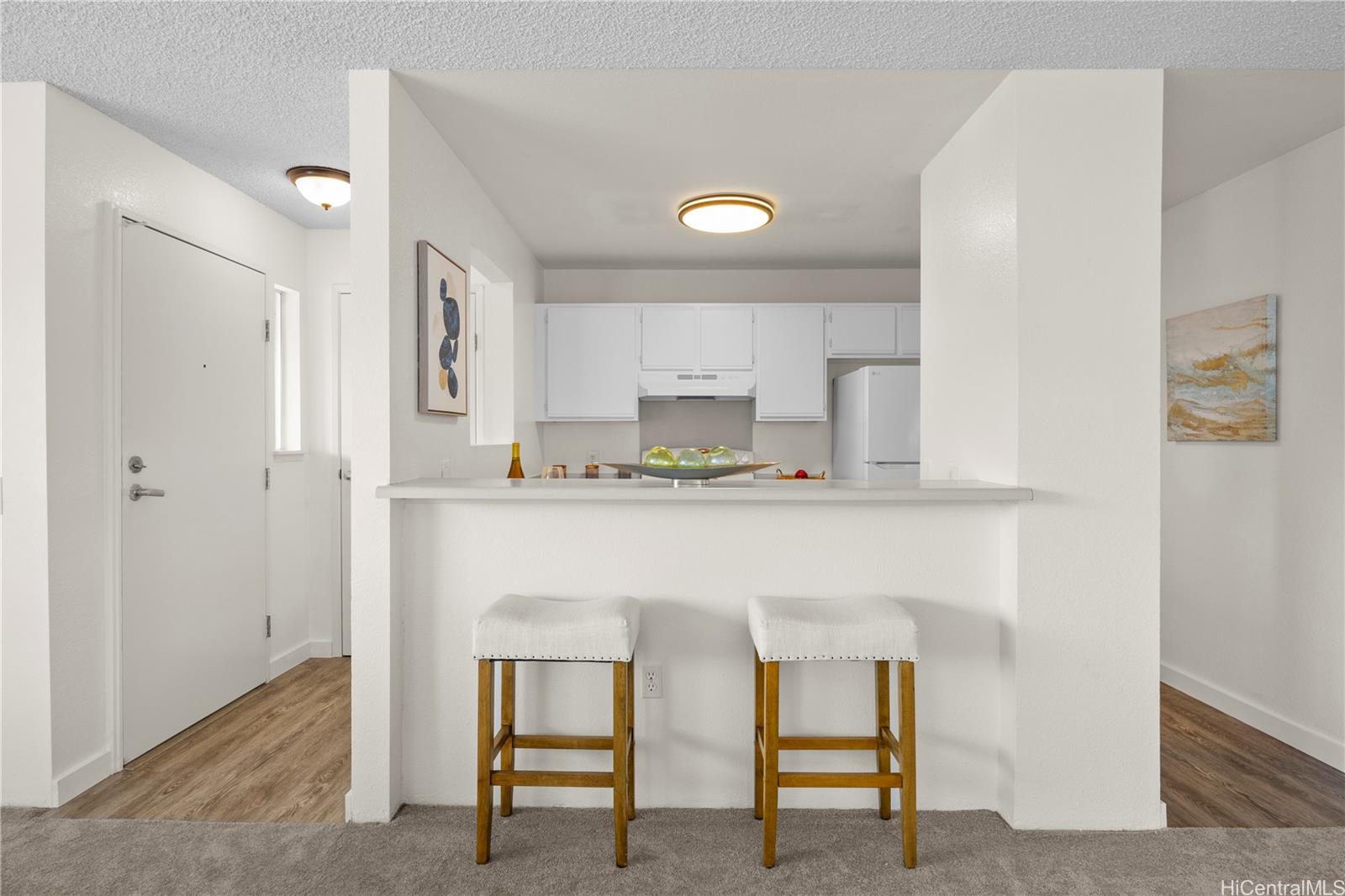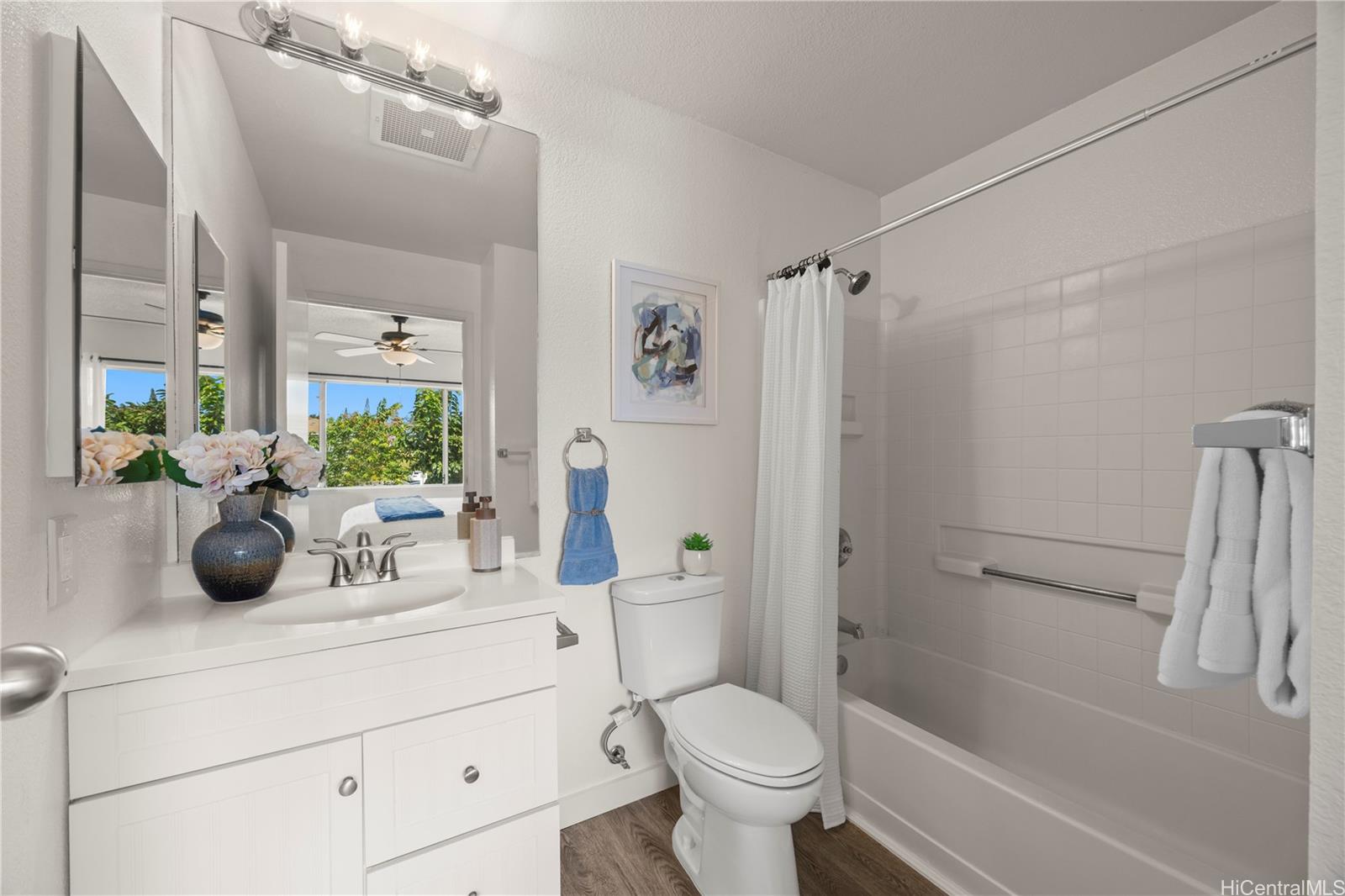 広々とした端のユニットで、静かな緑の景色と優れた自然風通しが魅力です。最近、床(カーペットとビニール)とシーリングファンを全面的に改装し、爽やかな雰囲気ですぐに入居できる空間を実現しています。キッチンには新しいレンジフードが設置されています。この2階のユニットは機能的な間取りで、階段のすぐ前に2台分の駐車スペースがあり便利です。ペット同伴可能なこの複合施設はエントランス近くに位置し、出入りもスムーズです。小学校まで徒歩圏内、公園、ショッピング、軍事基地、H-2フリーウェイにも近いという利便性をお楽しみください。
