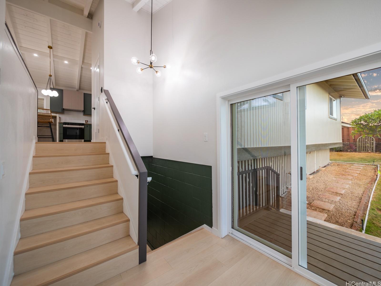 人気のニュータウン・エステーツにある、美しく改装された4ベッドルーム、2.5バスルームの住宅へようこそ。マウカ・トゥ・マカイ・コレクションの高級ラニカイ・メープルフローリングを採用したこの住宅は、島の魅力とモダンな快適さを兼ね備えています。高い天井、スプリットエアコン付きの広々としたリビングエリア、そして全寝室に窓用ユニットを備えています。広々としたキッチンには真新しいステンレス製の家電が備え付けられ、二重窓は省エネにも優れています。心地よいラナイは、屋内と屋外がシームレスにつながった生活空間を演出し、リラックスにも、おもてなしにも最適です。住宅内の様々な場所から、息を呑むような港の景色を堪能できます。すぐにご入居いただけ、細部までこだわった改装済みのこの住宅は、最高のロケーションにある必見の物件です。