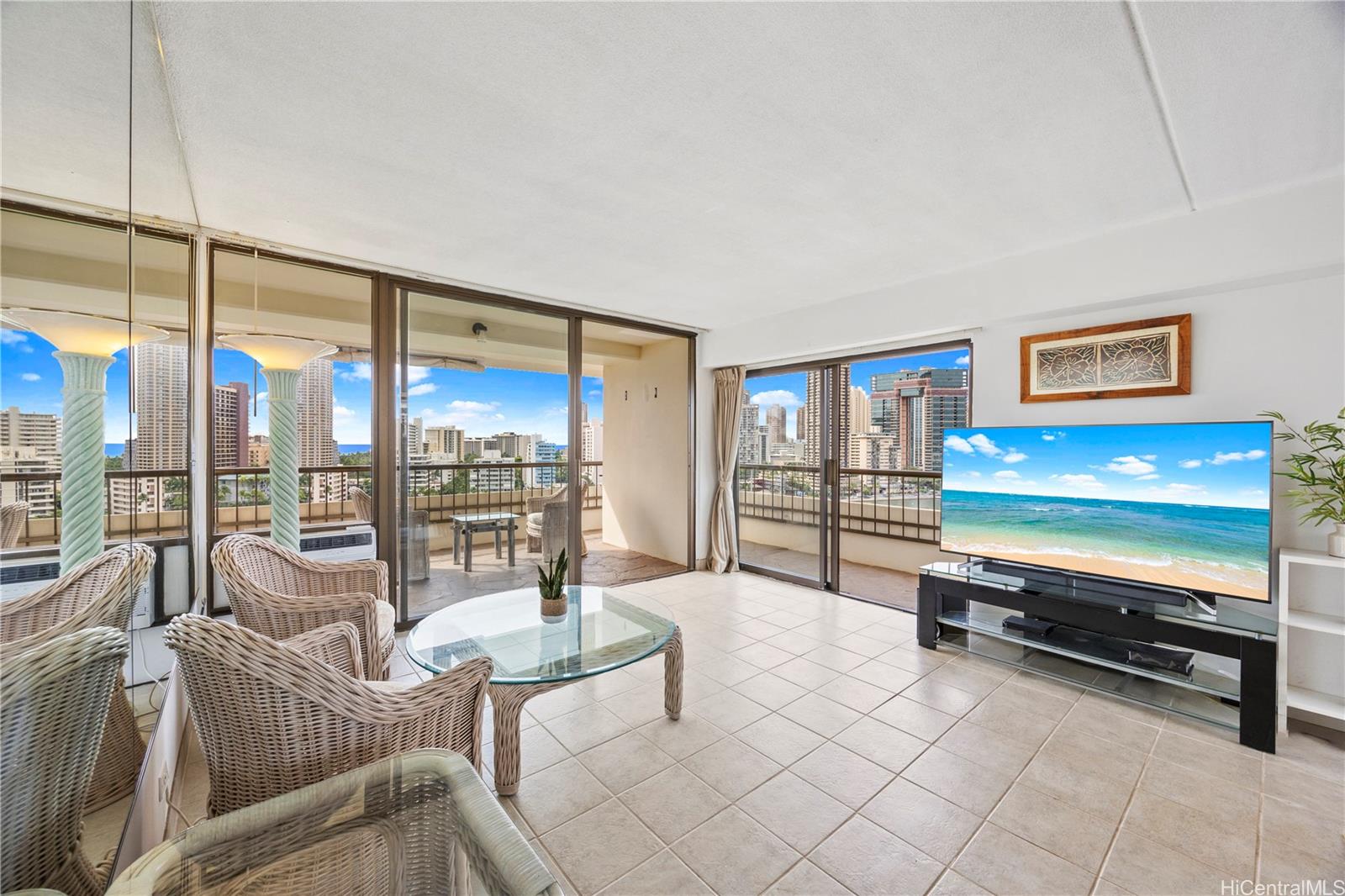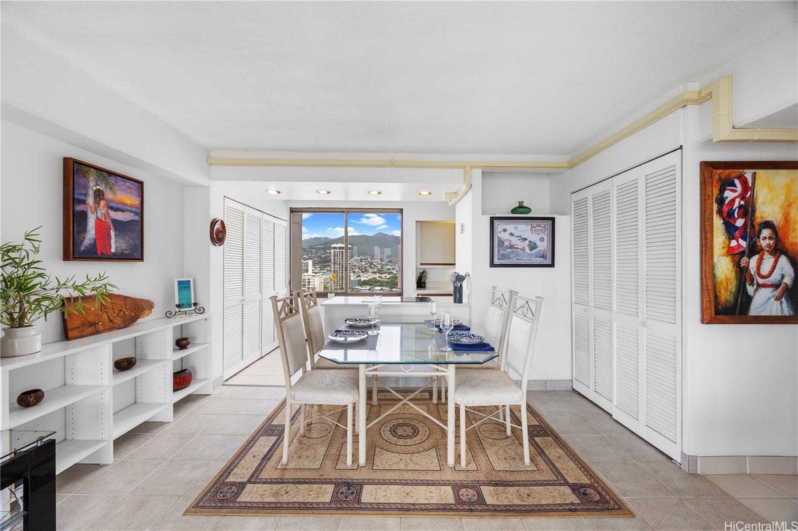 Excellent location on park setting with tropical grounds, close to famous Waikiki beaches, Ala Moana Shopping Center, restaurants and the University of Hawaii. The sprinkler/fire alarm system has been completed throughout the building without any special assessment. The Marco Polo offers resort-like amenities which include a wonderful large swimming pool, sauna, tennis, basketball/pickleball courts, BBQ, golf driving nets, a convenience store in the lobby, car wash area, bicycle/surfboard storage, lots of guest parking, storage, and 24 hour security.100% Hurricane Coverage with reasonable monthly maintenance fees. Photos have been Enhanced.
