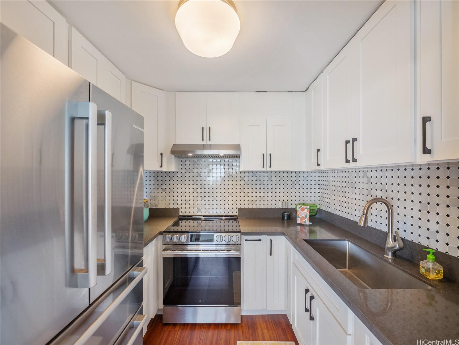 Set just beyond the energy of Waikiki, this beautifully renovated two-bedroom residence at Ala Wai Cove offers a refined balance of comfort and quality. Thoughtfully updated with high-end materials, the interior features engineered hardwood flooring, a well-appointed kitchen with stainless steel appliances and granite countertops, and an upgraded bathroom with large walk-in shower. The layout feels both functional and inviting, designed for everyday living with a clean, modern aesthetic. Expansive windows and a spacious 93 square foot lanai frame views of the Ala Wai Canal, the ocean beyond, and the vibrant Waikiki skyline, creating a dynamic backdrop from morning to evening. Whether enjoying your morning coffee or winding down at sunset, the lanai extends the living space and invites in cooling island breezes. Conveniently located near Waikiki, Iolani School, the University of Hawaii, shopping, dining, and major thoroughfares, Ala Wai Cove offers easy access to the best of Honolulu while remaining comfortably removed from the crowds.