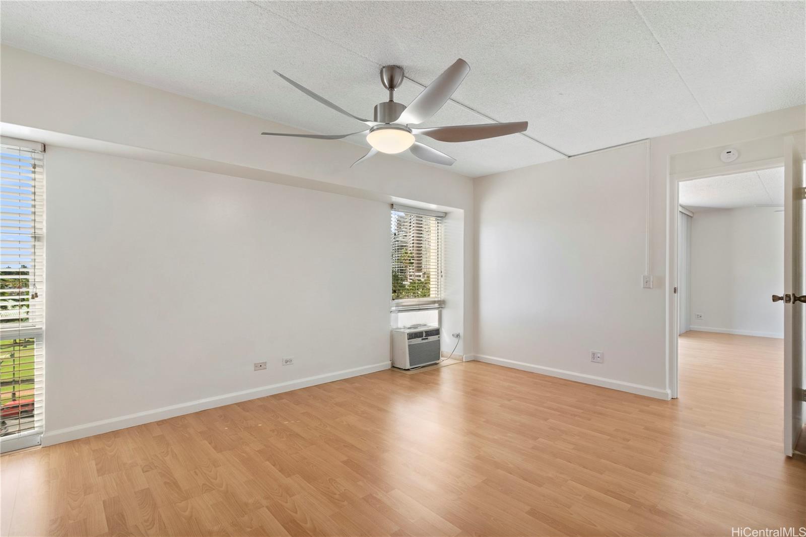Spacious 1-bedroom at Keoni Ana, ideally located at the quiet gateway of Waikiki. This well maintained unit is perched above the parking levels over looking DeRussy Park. Open living area, private lanai, and great natural light throughout. The home has been updated over the years with the most recent improvement being fresh interior paint throughout. Keoni Ana is a secure, well manage building offering guest parking and 24-hour security patrol. Prime location just minutes from Waikiki Beach, Ala Moana, shopping, dining, and major bus lines. Perfect for owner-occupants, investors, or as a Honolulu retreat. Easy to see, schedule your private showing today!