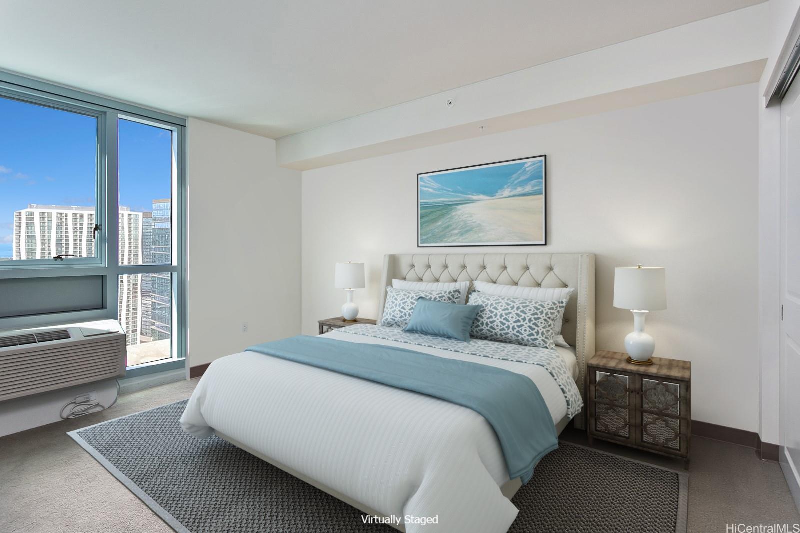 RARE 3 PARKING STALLS comes with this beautiful high floor residence in Award Winning Ward Village's Planned Community incl. "Ke Kilohana" or 988 Halekauwila (official name) completed in 2019. Freshly painted, well-maintained & in move-in condition, this home also comes with a separate storage unit on the same floor as the parking. Enjoy floor to ceiling windows, 3 cooling A/C units, attractive two-toned cabinets, granite countertops, stainless steel appliances, plush carpet & luxury vinyl flooring. Outstanding amenities incl. 2 signature multi-level sky lanais with breathtaking ocean & mountain views. Other features incl. a movie theatre, music studio, fitness center, bike & surfboard storage, dog run, flex-work space, indoor & outdoor children’s play areas, storage lockers, sky deck with barbecue grills & multiple indoor & outdoor lounges. Convenience is right here as just a short distance away is a multitude of shops, restaurants, entertainment, a marina, Ala Moana Beach & Shopping Center & downtown Honolulu. BE CLOSE TO EVERYTHING at Ward Village, a 24/7 privately patrolled neighborhood which includes security cameras & roving patrols. Make this your Home Sweet Home!