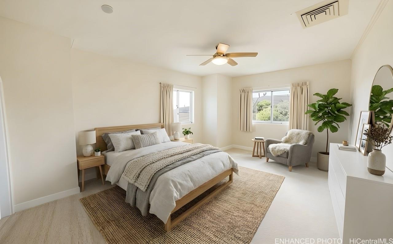 Located in the prestigious Portlock neighborhood, this gated residence offers privacy and close proximity to Maunalua Bay, including ¼ shared ownership in a beach access walkway just steps from the property and convenience of nearby Hawaii Kai amenities, including Costco, grocery stores, dining, and shopping just minutes away. Designed by award-winning architect James McPeak, the home features soaring ceilings, expansive windows, Italian porcelain flooring, and generous interior living spaces. The layout includes five bedrooms with two primary suites, each with a private lanai, a bonus room, along with spa-inspired bathrooms and an in-home sauna. Set on a 13,000+ sq ft lot, the property is complemented by a 50-foot saltwater pool and spa, covered lanai, and outdoor bar area. Recent improvements include a new custom roof (2021), updated windows (2022, excluding select doors), and a solar system subject to a power purchase agreement.
