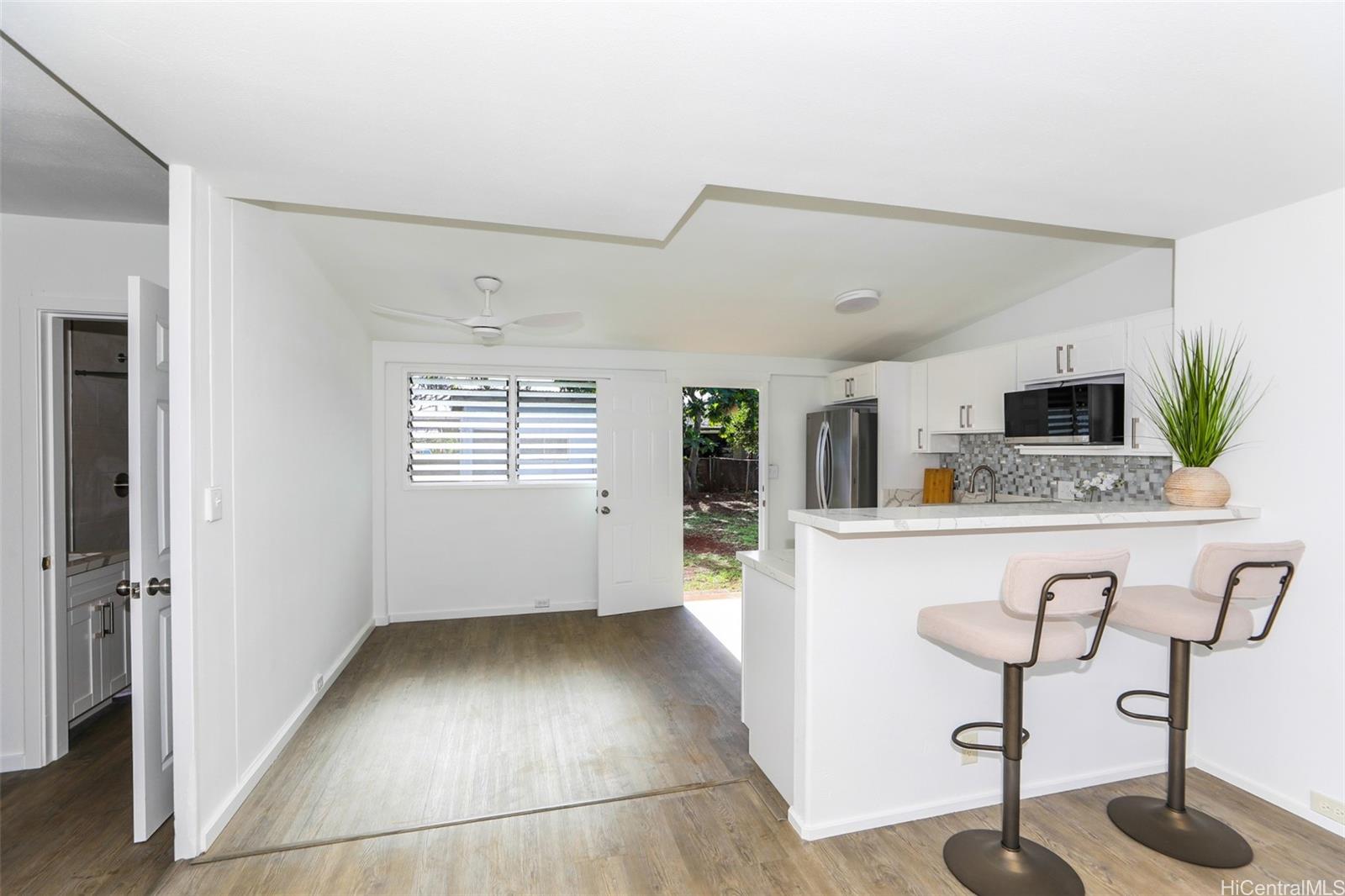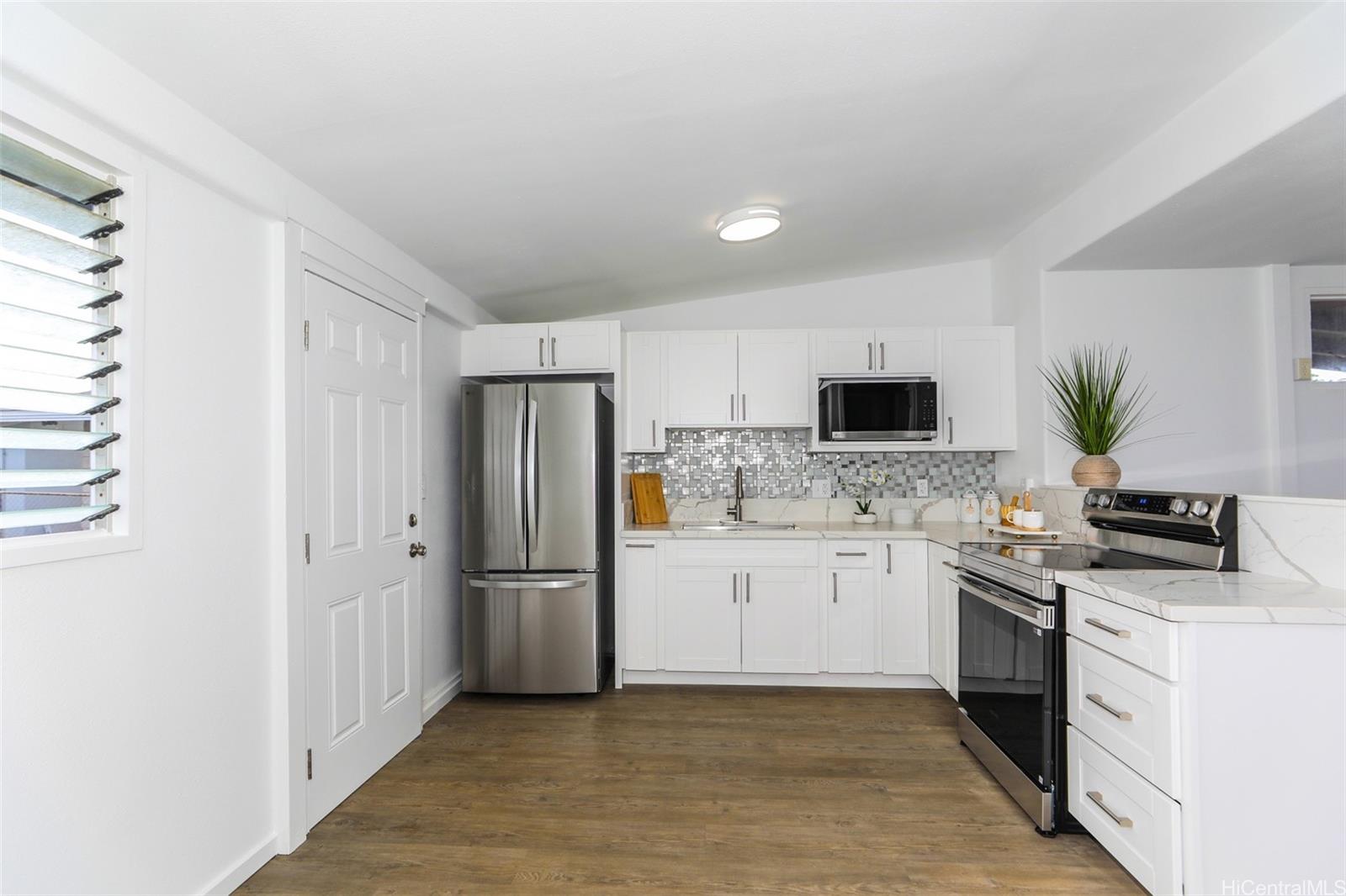 Just Renovated | Vacant & Move-In Ready. Welcome to this beautifully renovated single-family home in Ewa Beach! This recently flipped property features brand-new luxury vinyl plank (LVP) flooring throughout, fresh interior and exterior paint, and a brand-new roof for added peace of mind. The updated kitchen and bathroom shine with new cabinetry, granite countertops, modern faucets, fixtures, and vanities. Enjoy new stainless steel appliances (note: no dishwasher included) and new window A/C units for year-round comfort. The home is fully fenced and includes a carport with direct exterior access to a dedicated laundry room. Additional features include a backyard storage shed and a front gate, offering both functionality and privacy. Vacant and easy to show—don’t miss this move-in-ready opportunity in a convenient Ewa Beach location!