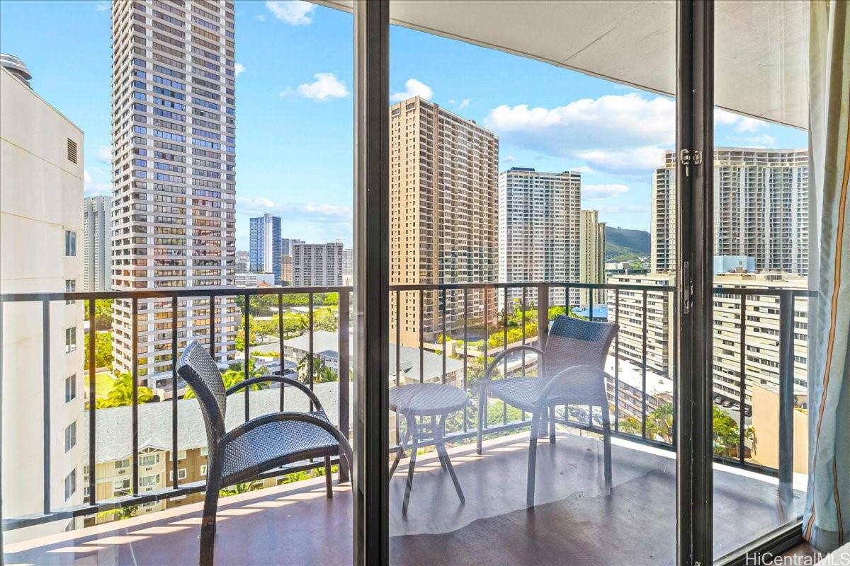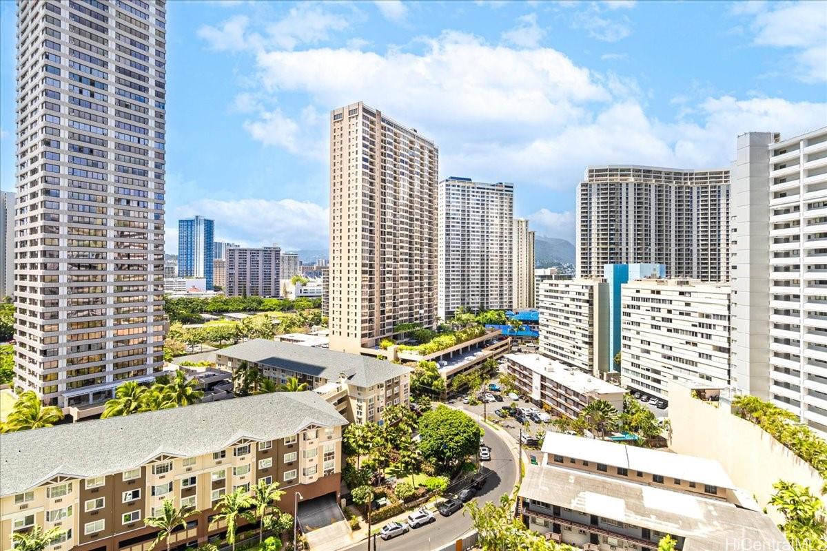 Welcome to Palms at Waikiki - where island elegance meets unbeatable convenience in the vibrant heart of Waikiki! Perched on a high floor with expansive city skyline and mountain views, this beautifully appointed and fully furnished turn-key studio offers an incredible opportunity for legal short-term rental or personal retreat. Unwind on your private lanai surrounded by island charm and enjoy the coveted convenience of ONE RARE DEDICATED OVERSIZED PARKING STALL located on the ideal second level — an exceptional find in Waikiki and ideal for both guests and owners! Enjoy amenities including a sparkling pool, fitness center, BBQ area, laundry facilities, and 24-hour front desk. Just moments from Waikiki Beach, Ala Moana Center, and world-class shopping and dining. Don’t miss your chance to own a piece of paradise with unmatched flexibility, great income potential and prime location!