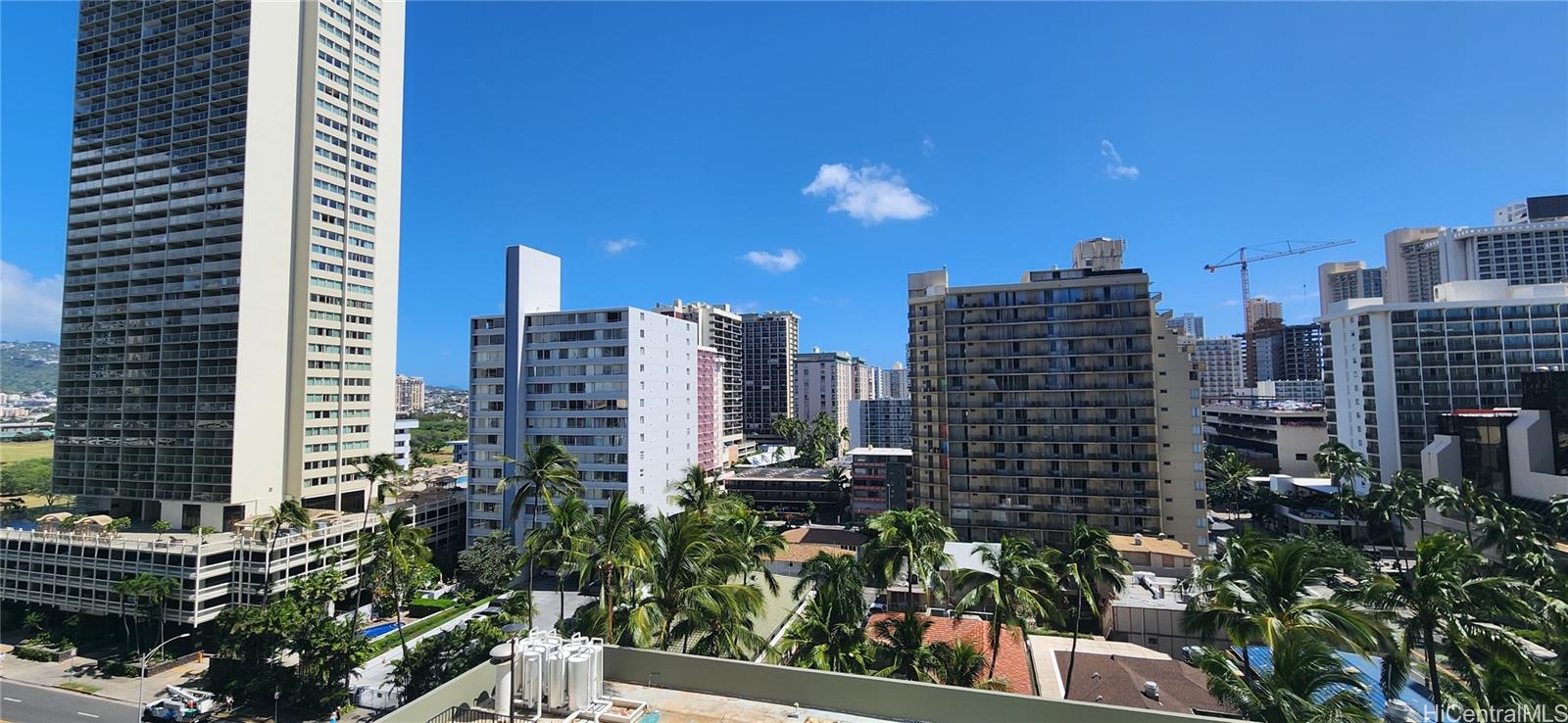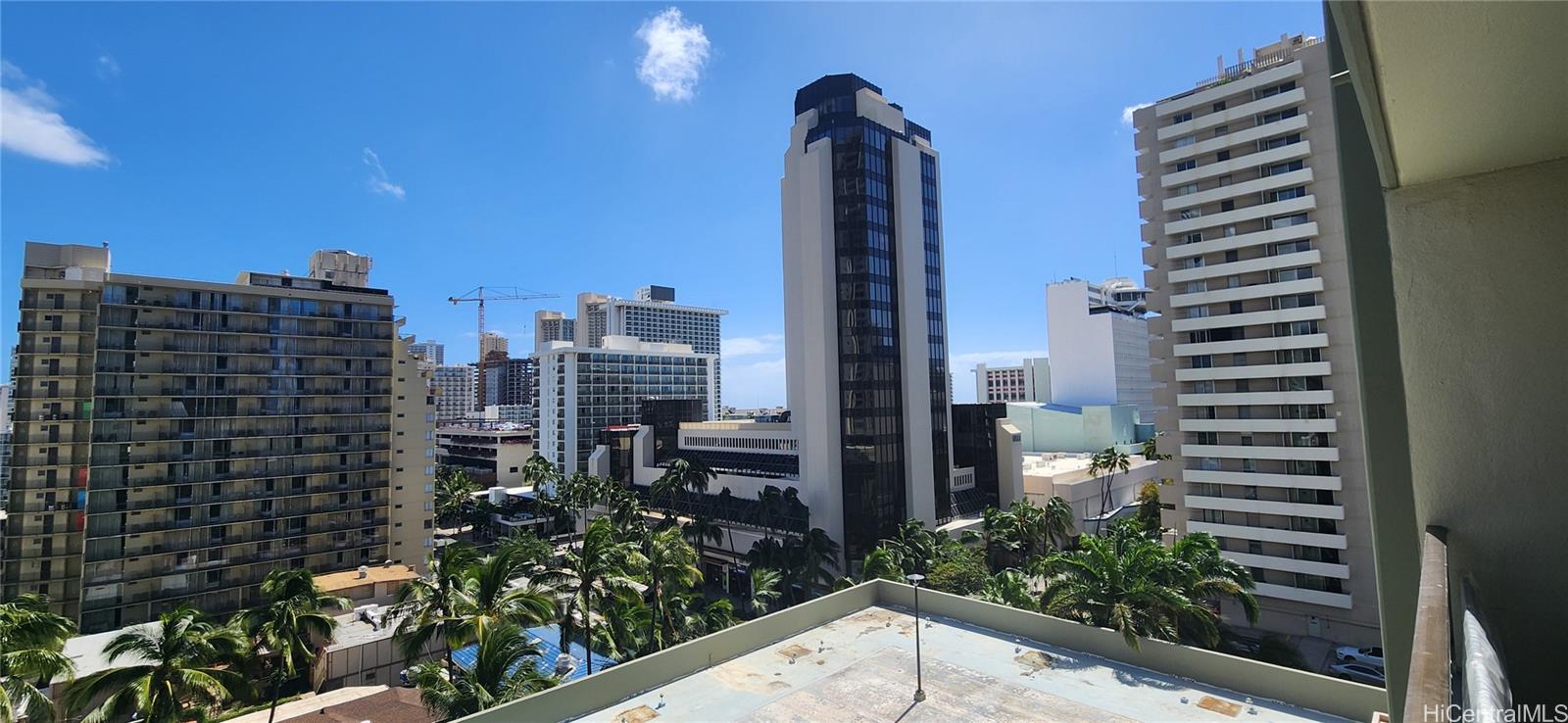 Fee simple 1 bedroom, 1 bath unit with 1 assigned covered parking stall in the heart of Waikiki! Popular building on Kuhio Avenue with lots of amenities. Easy access to soo many conveniences and near access to the beach. East facing unit offers sunrises and cool comfortable living! Enjoy city views from your lanai. Unit features upgraded bathroom, vinyl plank flooring in the living area, window air conditioner, ceiling fan and more!