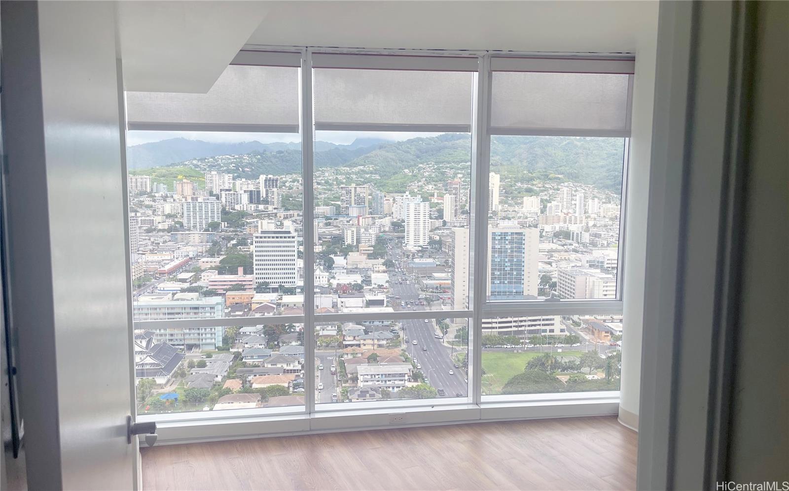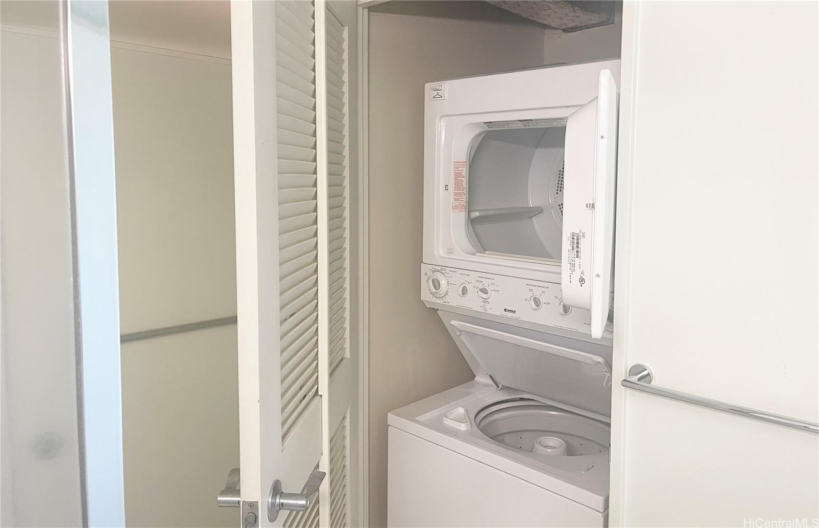 High floor rare '02 stack with 2 bedrooms and 2 full bathrooms! Beautiful mountain views with an amazing breeze in the cooler side of the building. Open kitchen, granite countertops, hardwood flooring, central air conditioning, and washer/dryer in the unit are just some of the great benefits of this unit. The unit was remodeled in 2023 with all new wooden flooring, new refrigerator, new washer/dryer, new toilet, and new lights! The building amenities include tennis/pickleball courts, playground, theater room, BBQ area, party room, and plenty of recreational areas. The building also allows pets (check for exact policy) and features 24/7 live security.