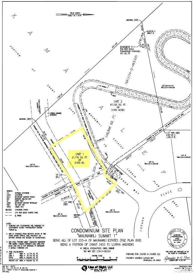night. The only remaining Lot available in the Maunawili Summit Development. All other lots have been taken. Act